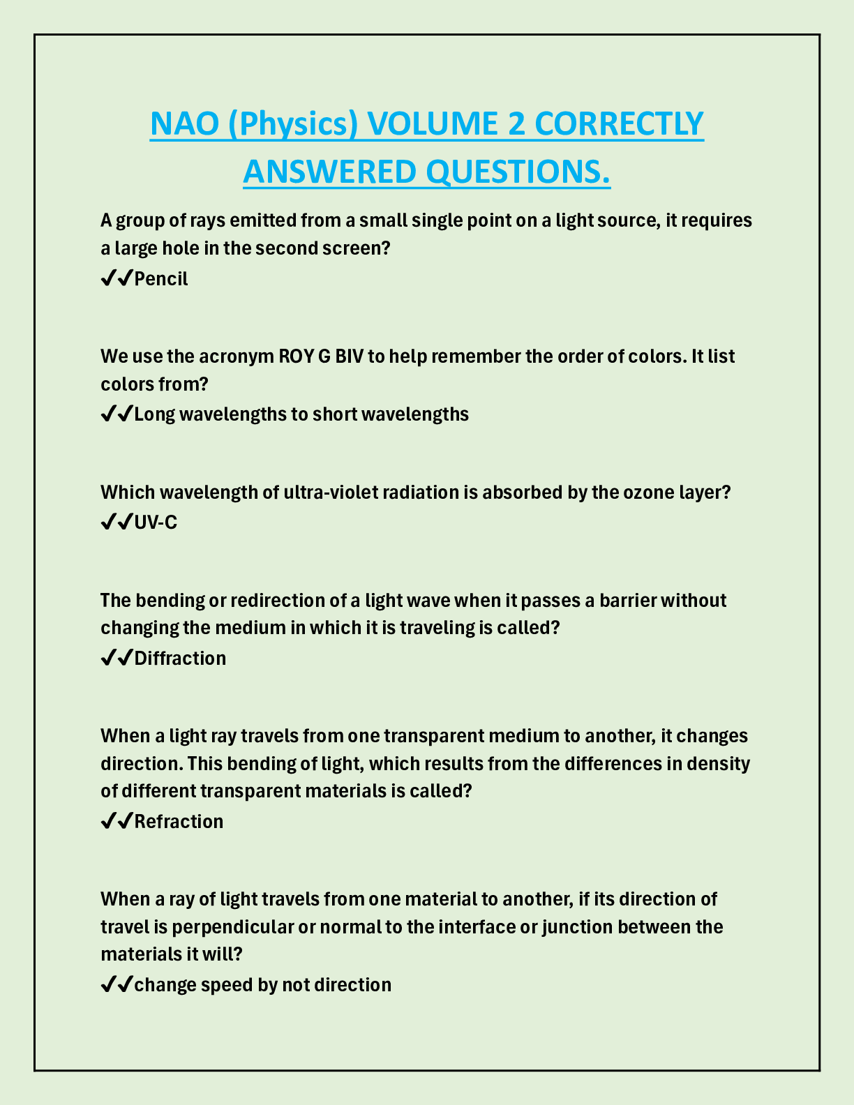 Physics > EXAM > NAO (Physics) VOLUME 2 CORRECTLY ANSWERED QUESTIONS (All)