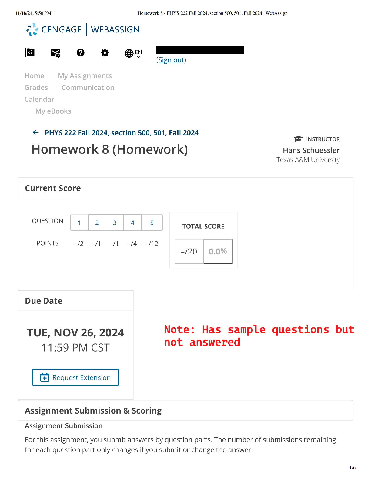 Physics > HOMEWORK > PHYS 222 Homework 6 – Modern Physics for Engineers | Texas A&M University (All)