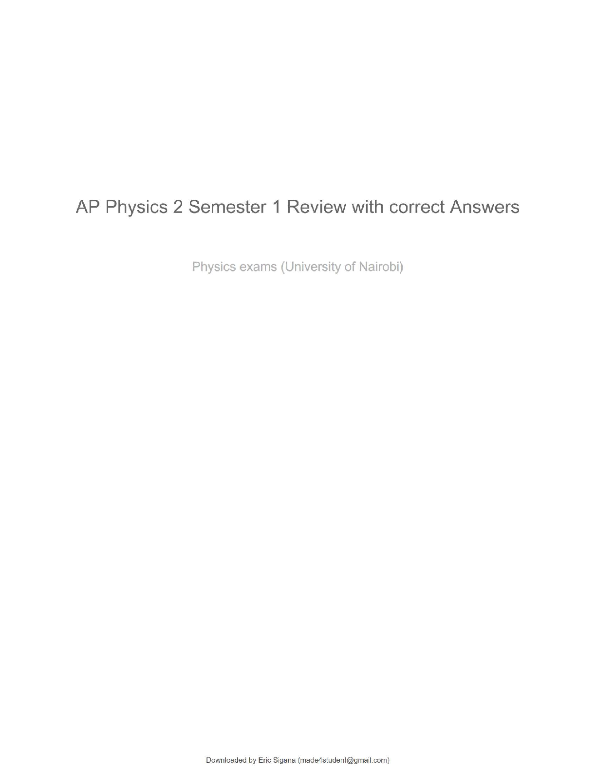 Physics > QUESTIONS and ANSWERS > AP Physics 2 – Semester 1 Review | Correct Answers | Verified Study Guide | 100% Accurate | Grade A (All)
