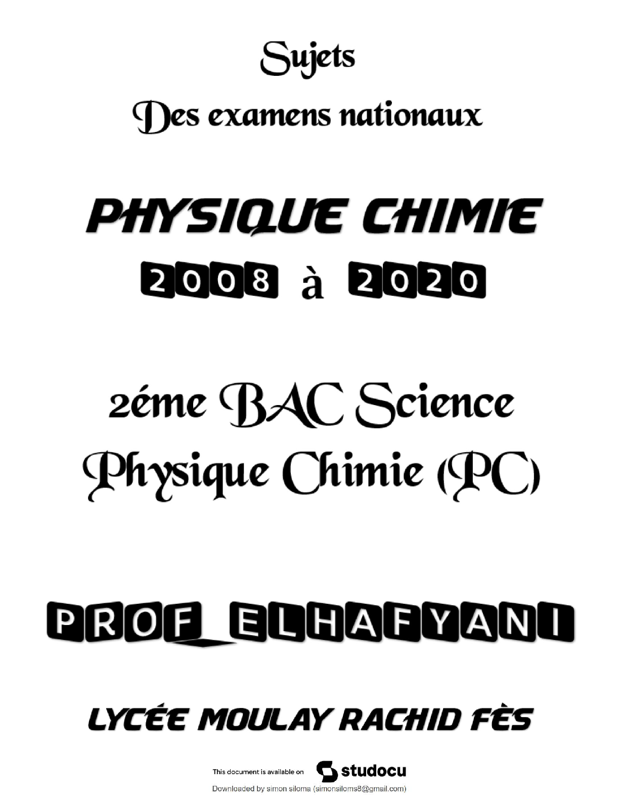 Physics > QUESTIONS & ANSWERS > SPC Examens Nationaux 2008–2020 / Analyse complète des sessions / Score 100% / 2025 Update (All)