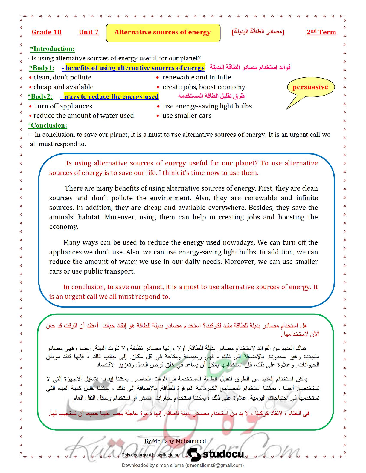 Physics > QUESTIONS & ANSWERS > سأجهّز لك مجموعة موضوعات تعبير جاهزة ومبسّطة عن الطاقة البديلة والتكنولوجيا الحديثة مناسبة لطلاب الصف العاشر – الكورس الثاني. يمكن استخدامها كنماذج تدريبية للامتحانات أو كواجبات مدرسية. (All)