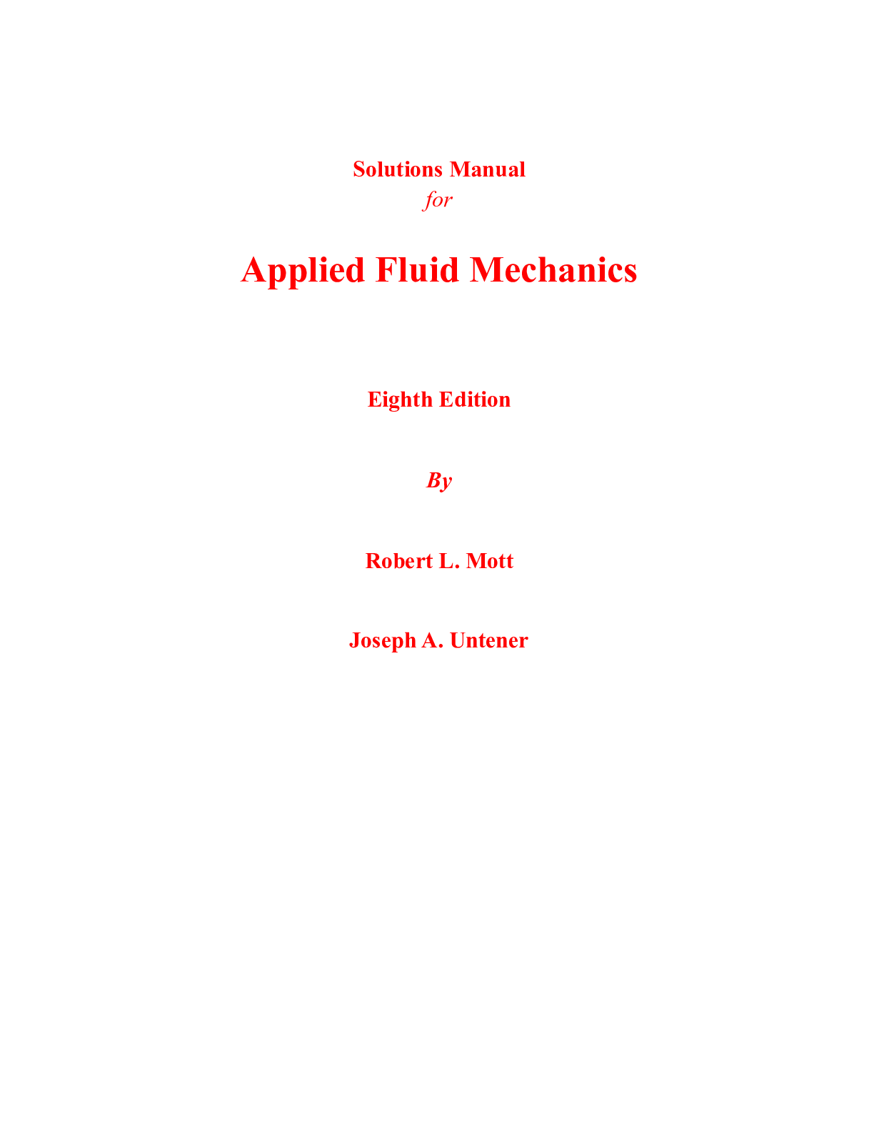 Physics > SOLUTIONS MANUAL > Solutions Manual For Applied Fluid Mechanics 8th Edition By Joseph Untener, Robert Mott (All Chapters, 100% Original Verified, A+ Grade) (All)