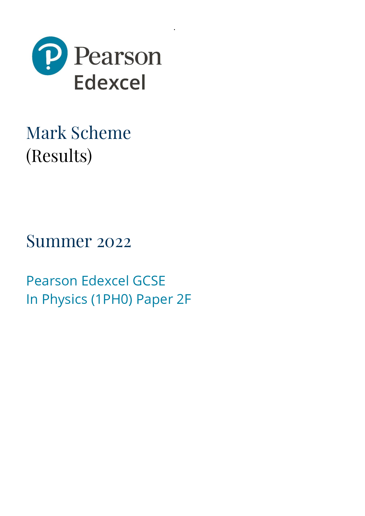 Physics > MARK SCHEMES > Mark Scheme (Results) Summer 2022 Pearson Edexcel GCSE In Physics (1PH0) Paper 2F Edexcel and BTEC Qualifications (All)