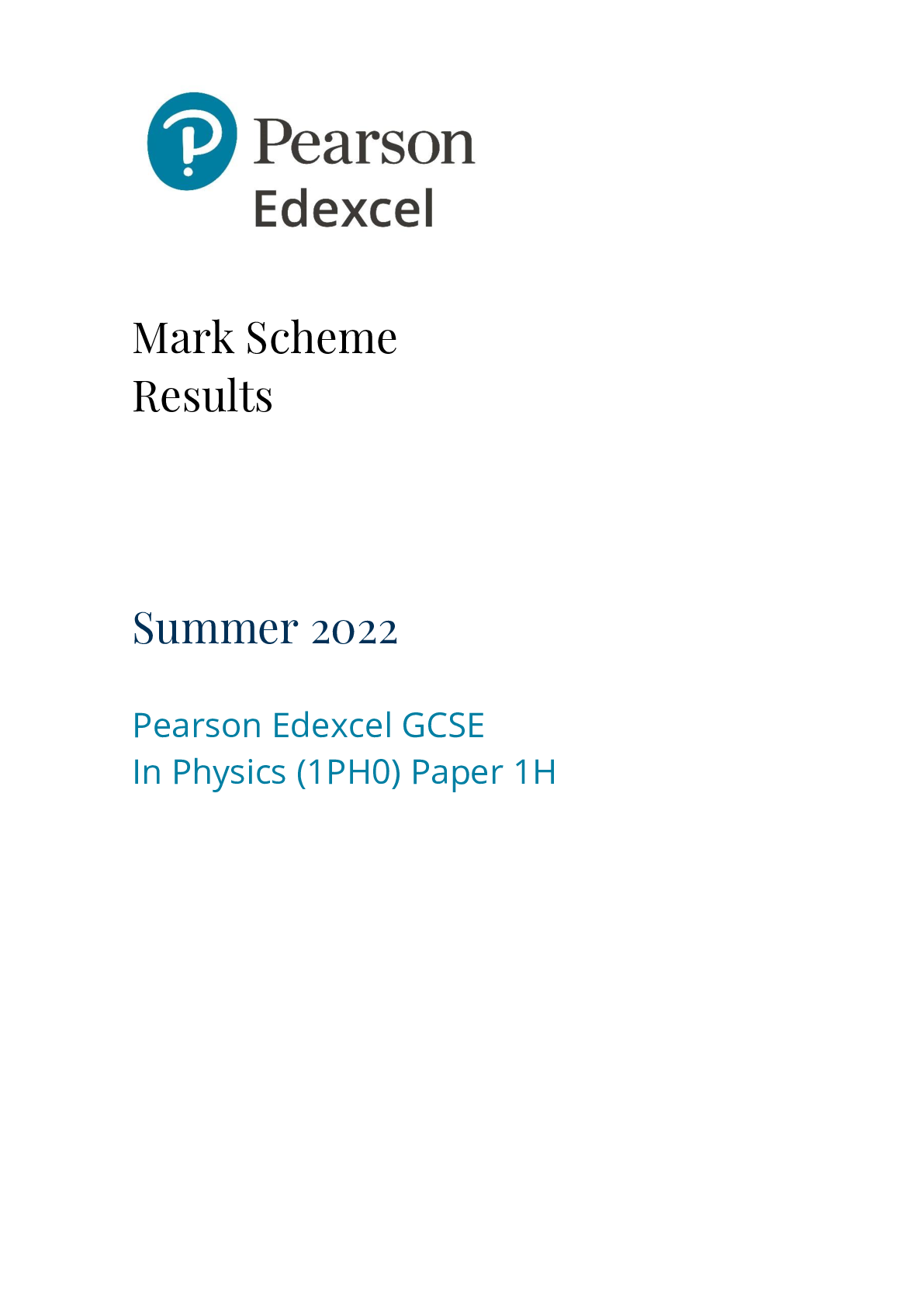 Physics > MARK SCHEMES > Mark Scheme Results Summer 2022 Pearson Edexcel GCSE In Physics (1PH0) Paper 1H Pearson: helping people progress, everywhere (All)
