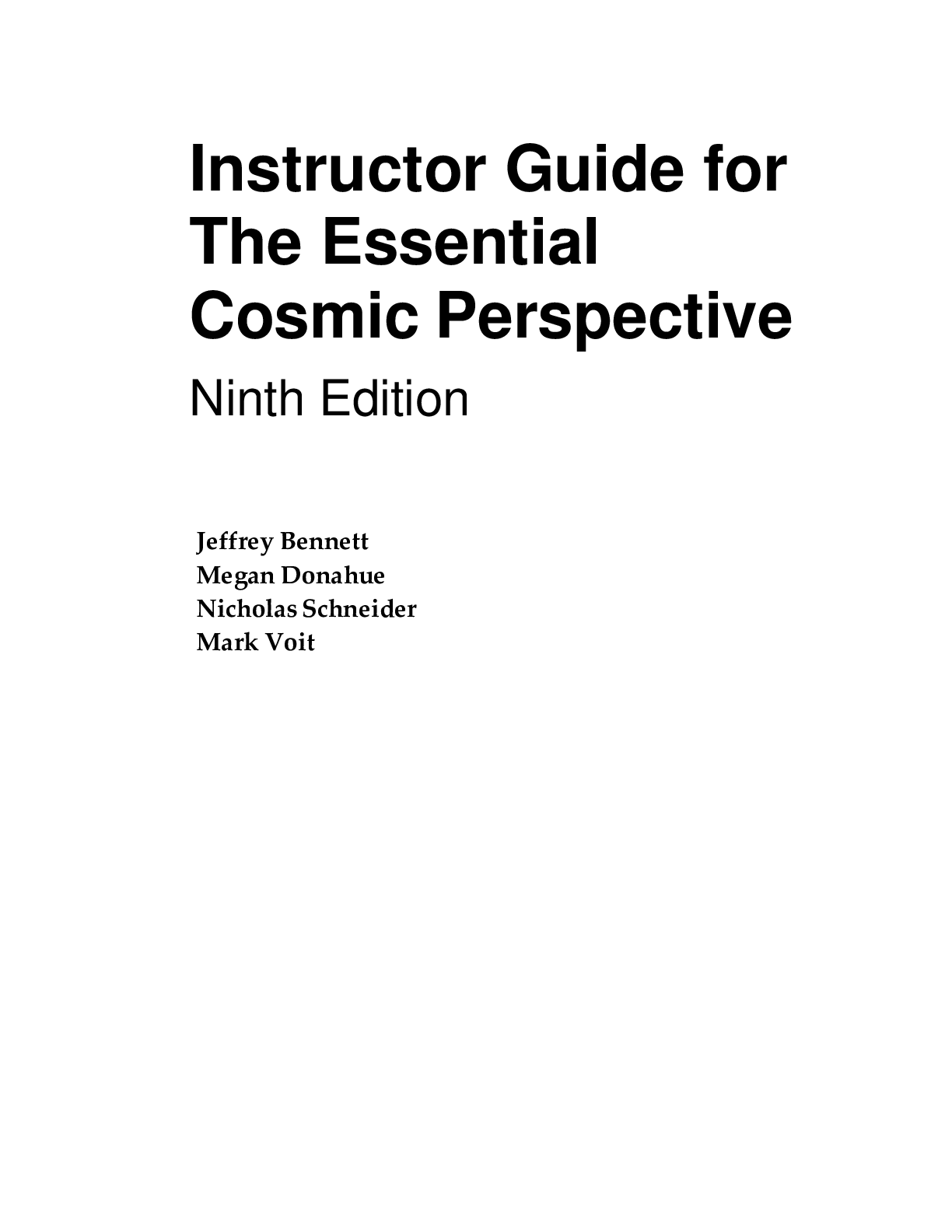 Physics > INSTRUCTOR MANUALS > Instructor Guide For Essential Cosmic Perspective, The 9th Edition by Jeffrey O. Bennett Megan O. Donahue Nicholas Schneider Mark Voit Chapter 1-9 (All)