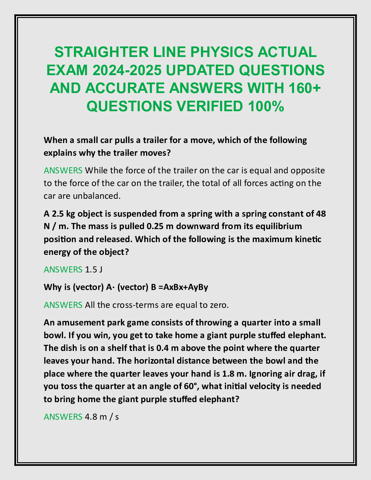 Physics > EXAM > STRAIGHTER LINE PHYSICS ACTUAL EXAM 2024-2025 UPDATED QUESTIONS AND ACCURATE ANSWERS WITH 160+ QUESTIONS VERIFIED 100% (All)