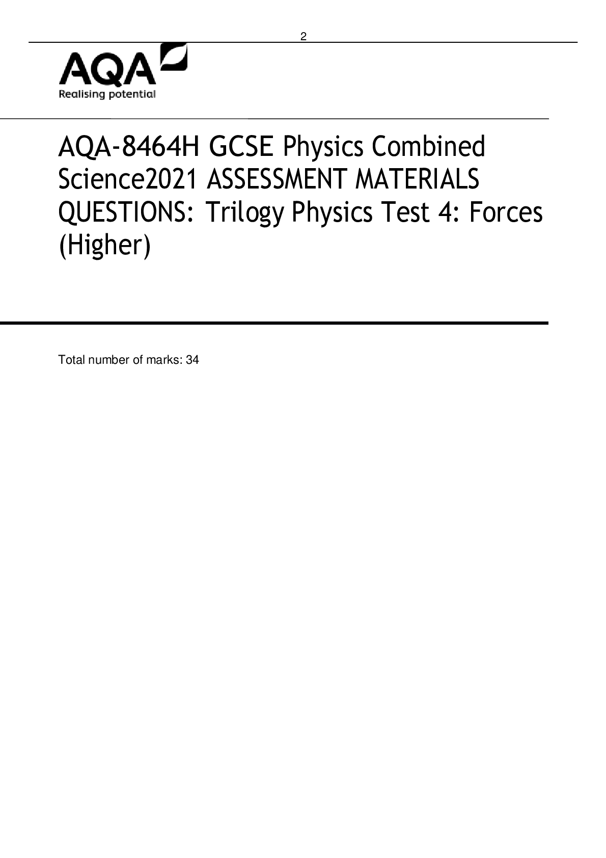 Physics > AQA Question Papers > AQA A LEVEL PHYSICS 2021 PAPER 1 QP. (All)