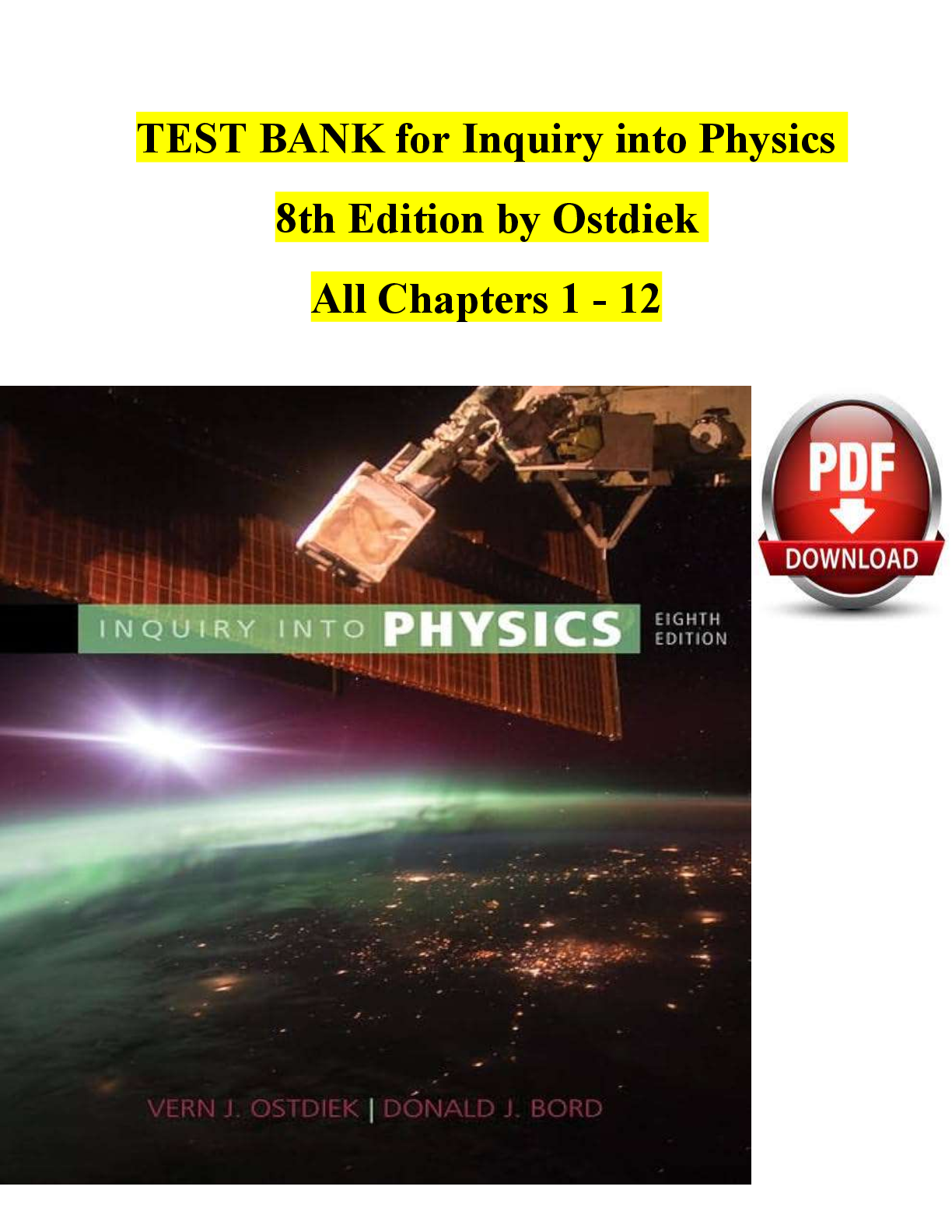 Physics > TEST BANKS > TEST BANK for Inquiry into Physics 8th Edition by Ostdiek All Chapters 1 - 12 (All)