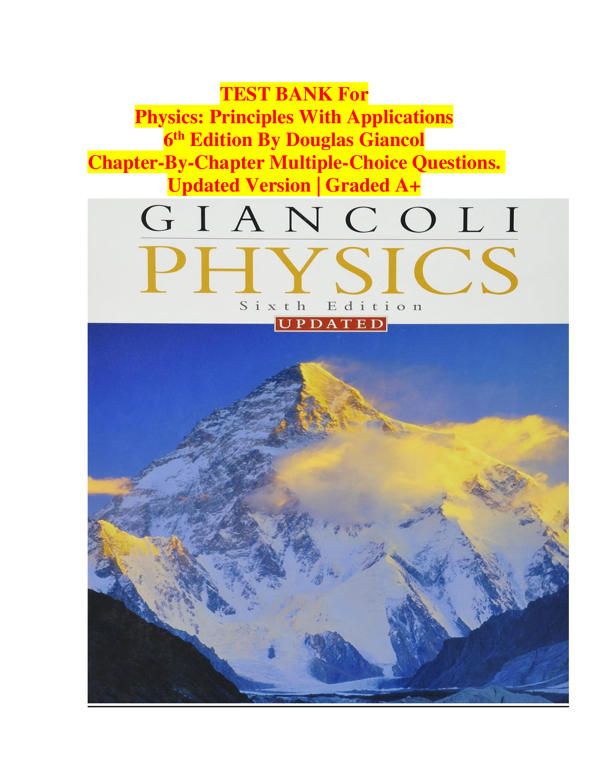 Physics > TEST BANKS > Physics: Principles with Applications (Giancoli 6th Edition) – Complete Test Bank with Chapter-by-Chapter Multiple-Choice Questions and Answers (Academic Resource) (All)