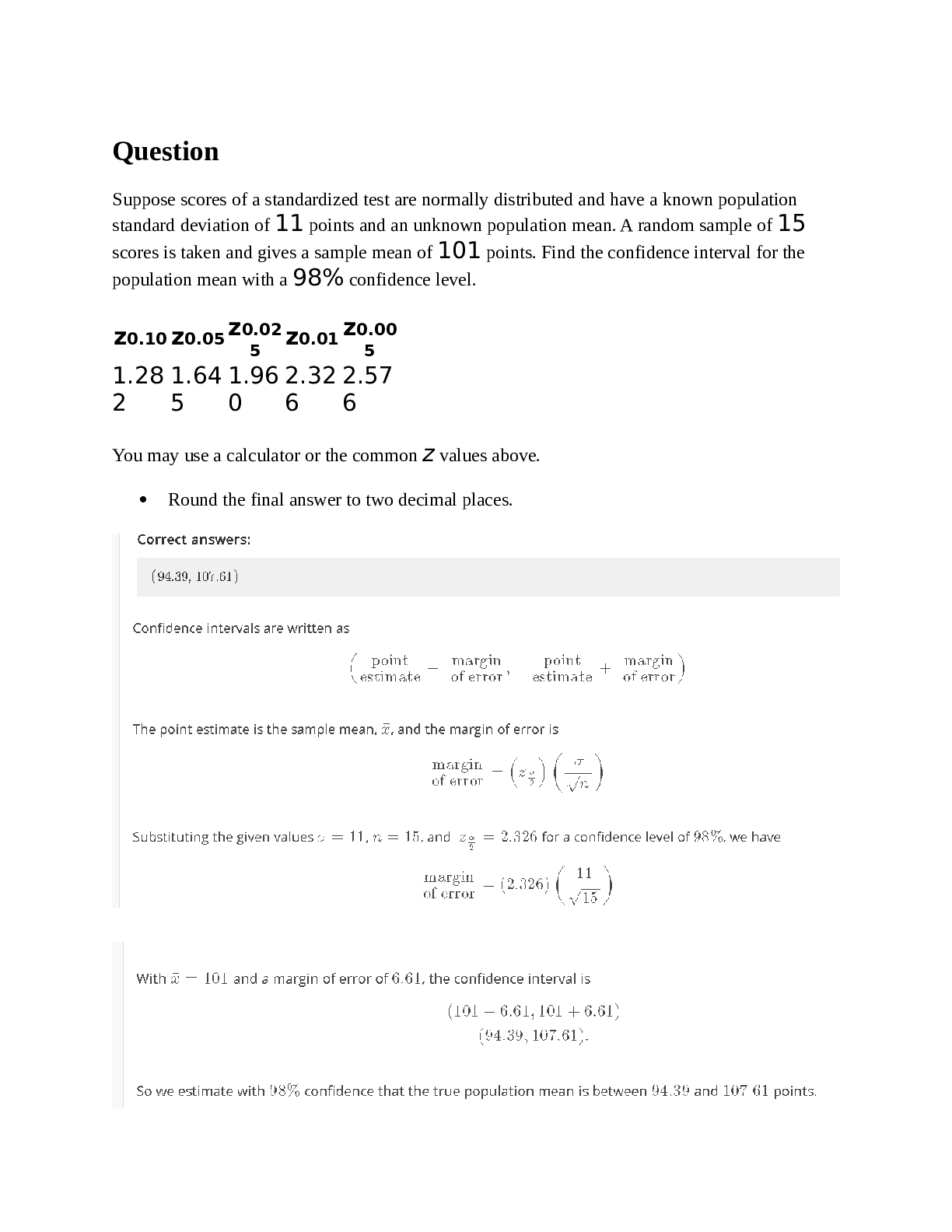 Statistics > QUESTIONS & ANSWERS > Week 6 Assignment Confidence Interval for Mean - Population Standard Deviation (All)