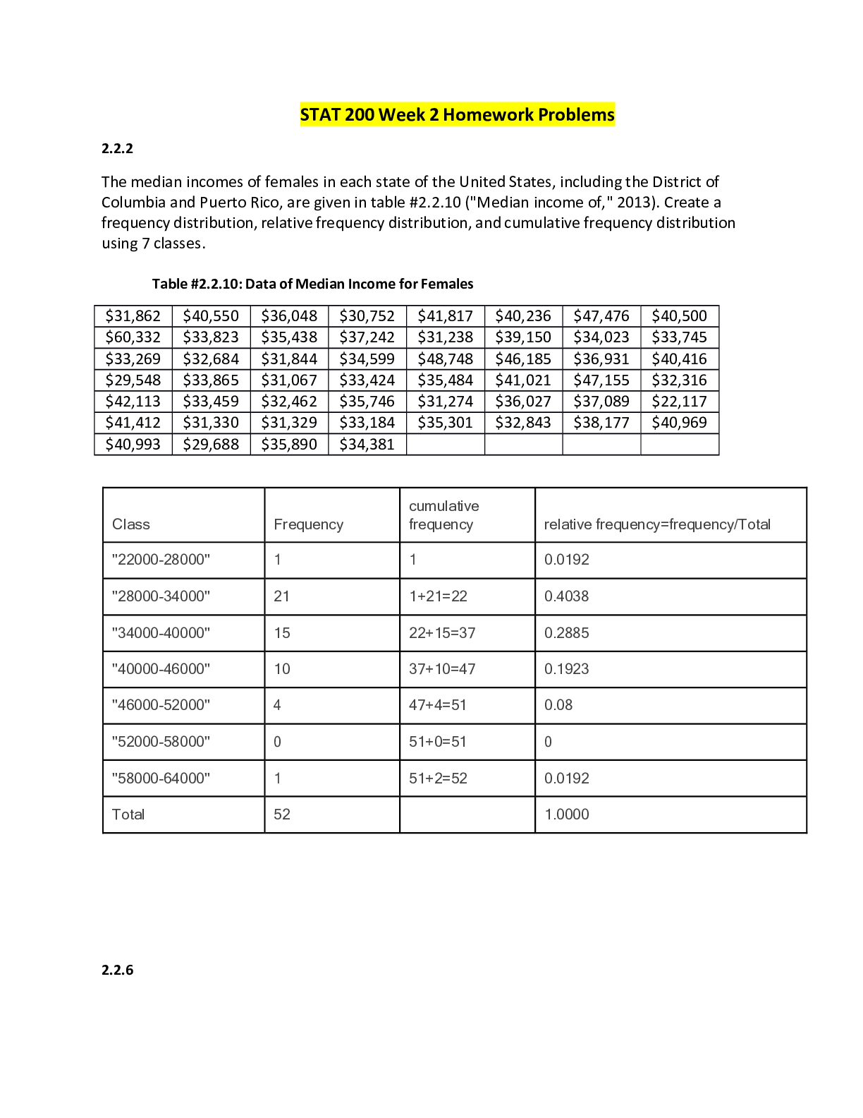 Statistics > EXAM > STAT 200 Week 2 Homework Problems (All)