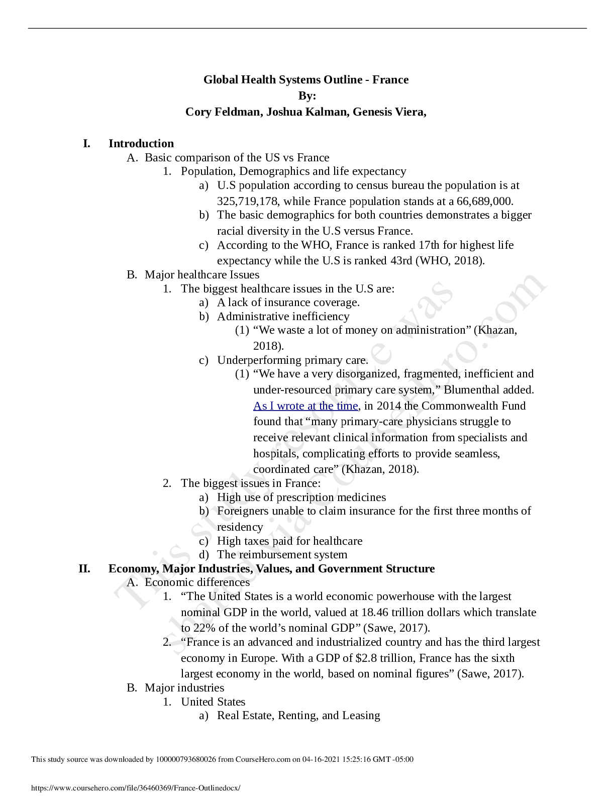 Statistics > STUDY GUIDE > Global Health Systems Outline<Florida Atlantic University - HSA 3111France Outline (All)