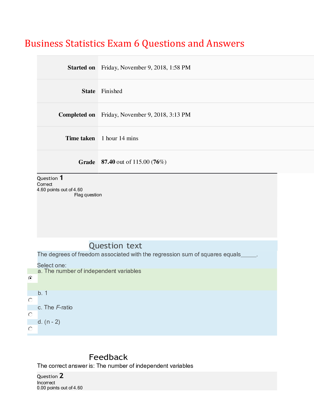 Statistics > EXAM > Business Statistics Exam 6 Questions and Answers,100% CORRECT (All)