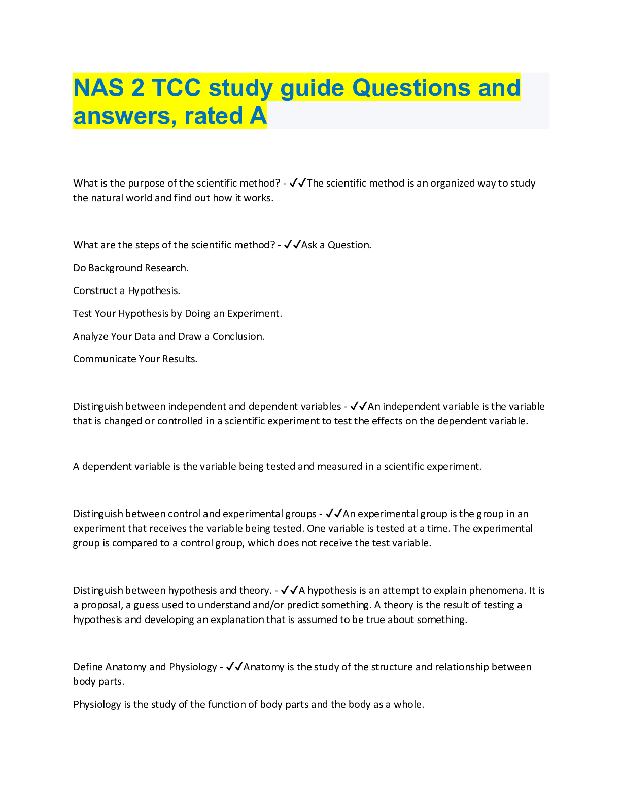 Statistics > QUESTIONS & ANSWERS > NAS 2 TCC study guide Questions and answers, rated A (All)