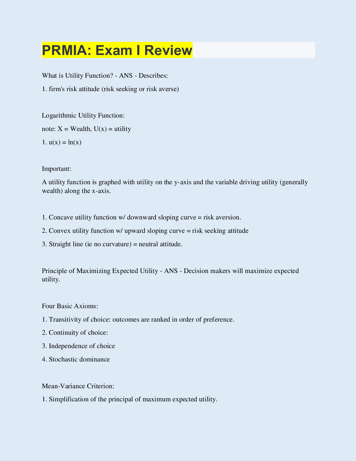 Statistics > EXAM > PRMIA: Exam I Review | 150 Questions with 100% Correct Answers | Updated & Verified | 31 Pages (All)