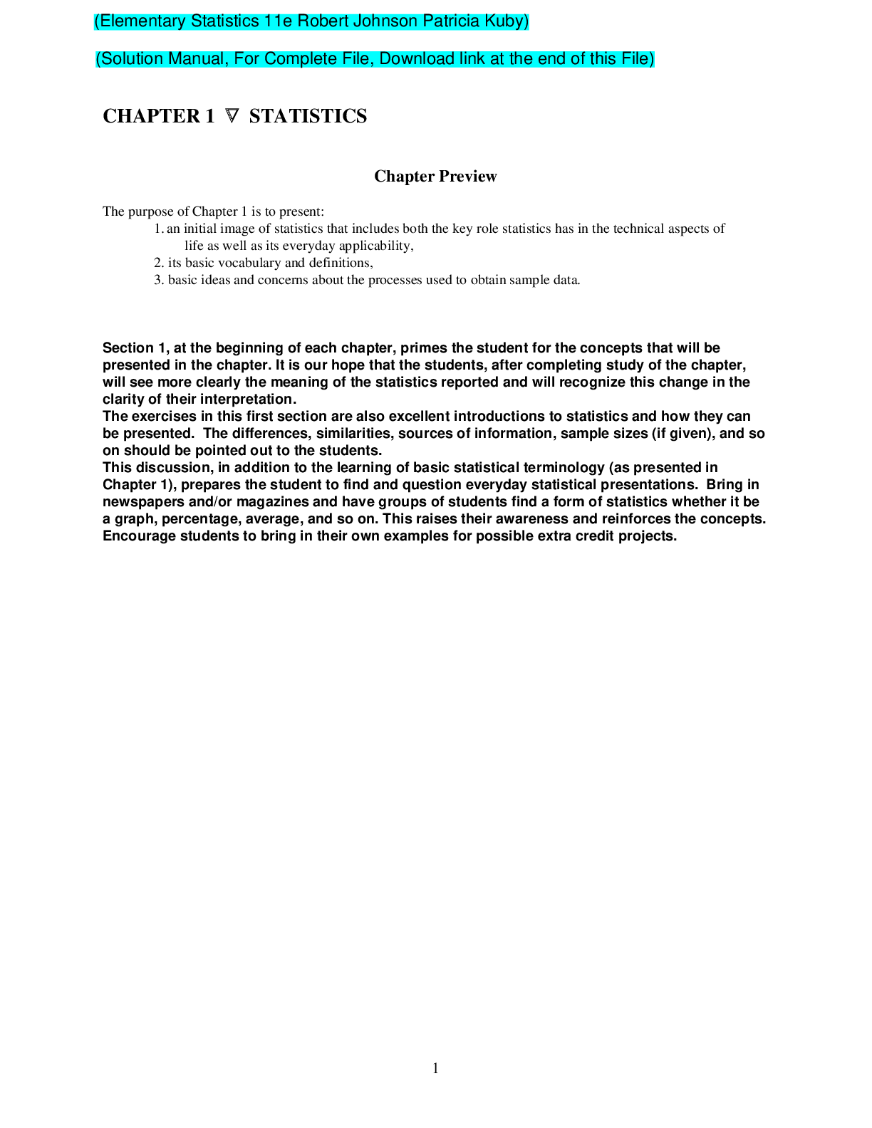 Statistics > SOLUTIONS MANUAL > Elementary Statistics 11e Robert Johnson Patricia Kuby (Solution Manual) (All)