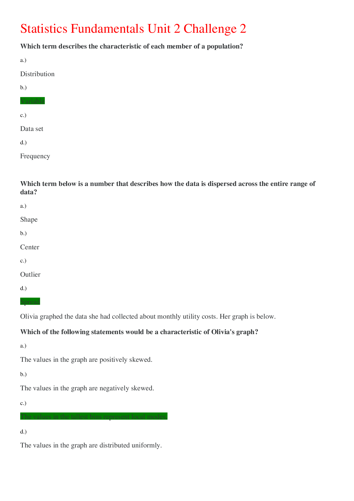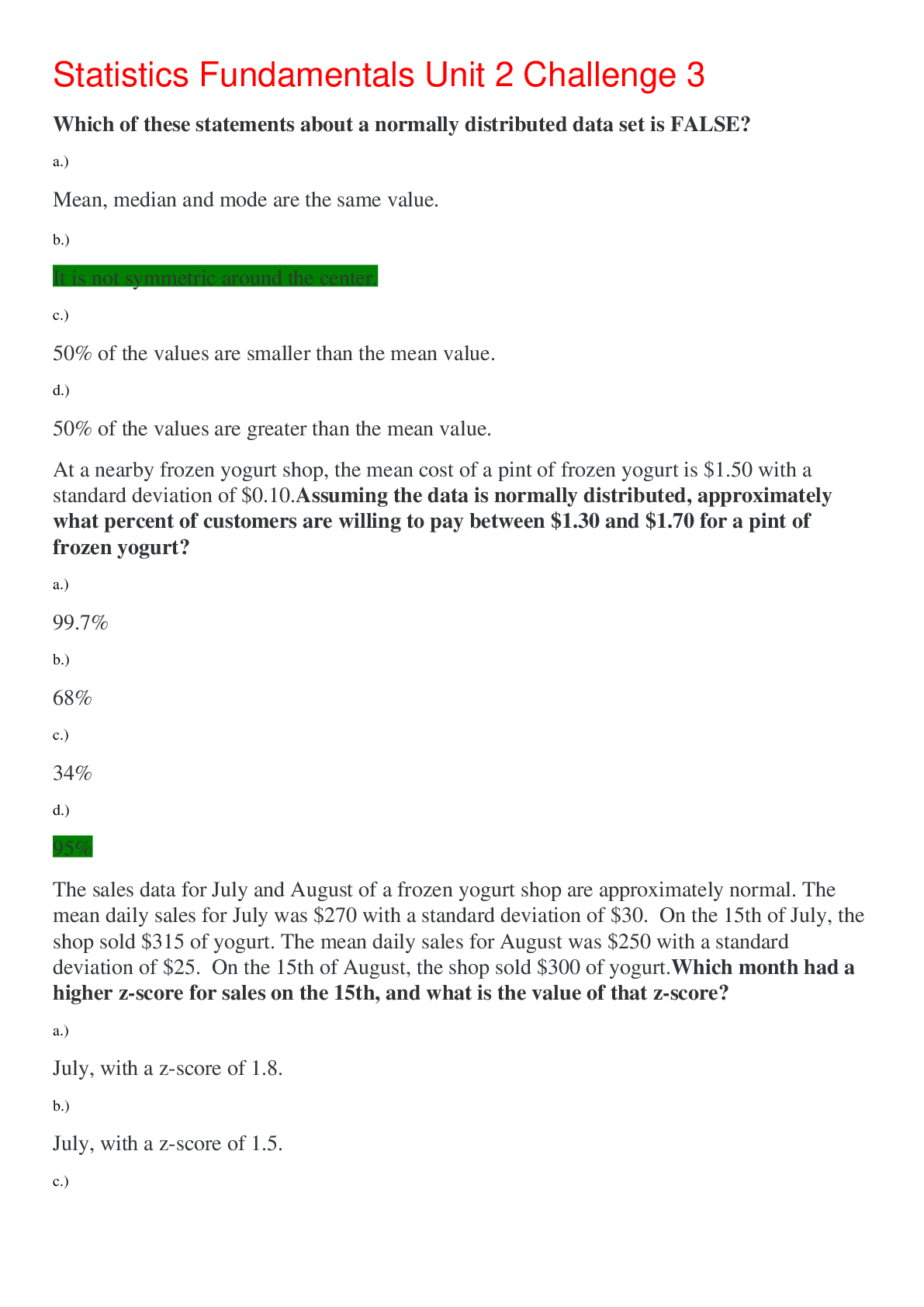 Statistics > EXAMs > Statistics Fundamentals Unit 2 Challenge 2,100% CORRECT (All)