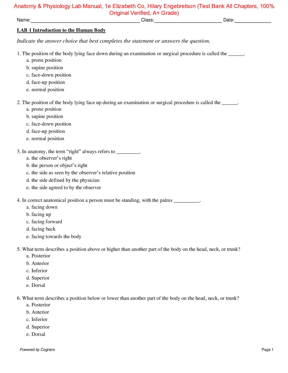 Anatomy > TEST BANKS > Hole's Human Anatomy & Physiology, 16th Edition by By Welsh and Prentice-Craver | TEST BANK (All)