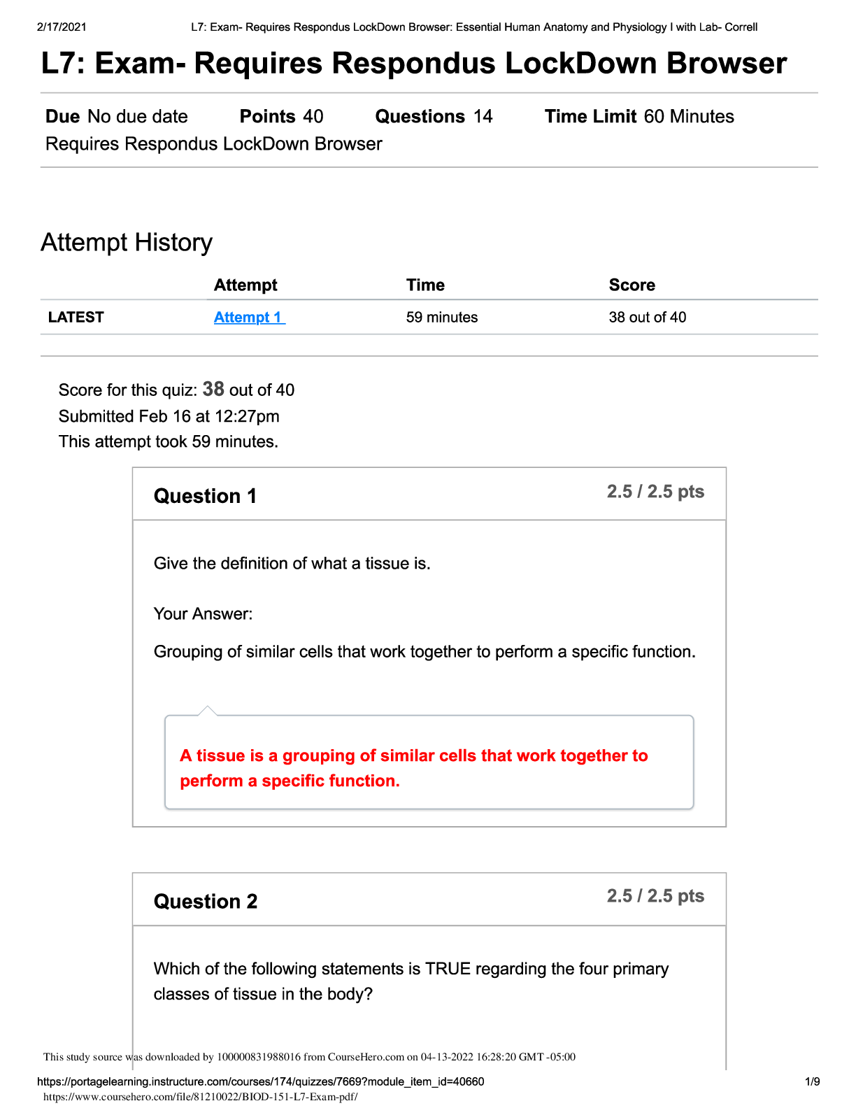 Anatomy > QUESTIONS & ANSWERS > BIOD 151 Anatomy & Physiology L7 Exam_2022 | BIOD151 L7 Exam_Graded A - Portage Learning (All)