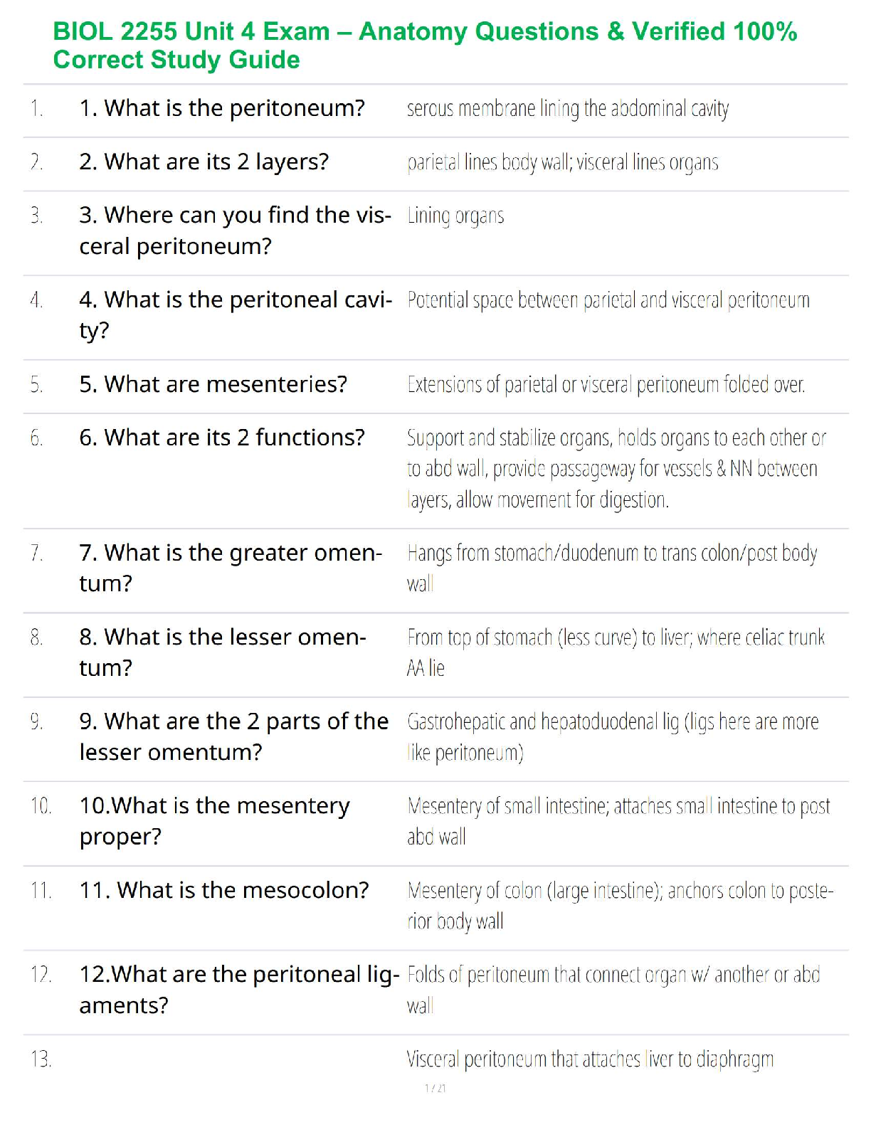 Anatomy > QUESTIONS & ANSWERS > BIOL 2255 Unit 4 Exam – Anatomy Questions & Verified 100% Correct Study Guide (All)