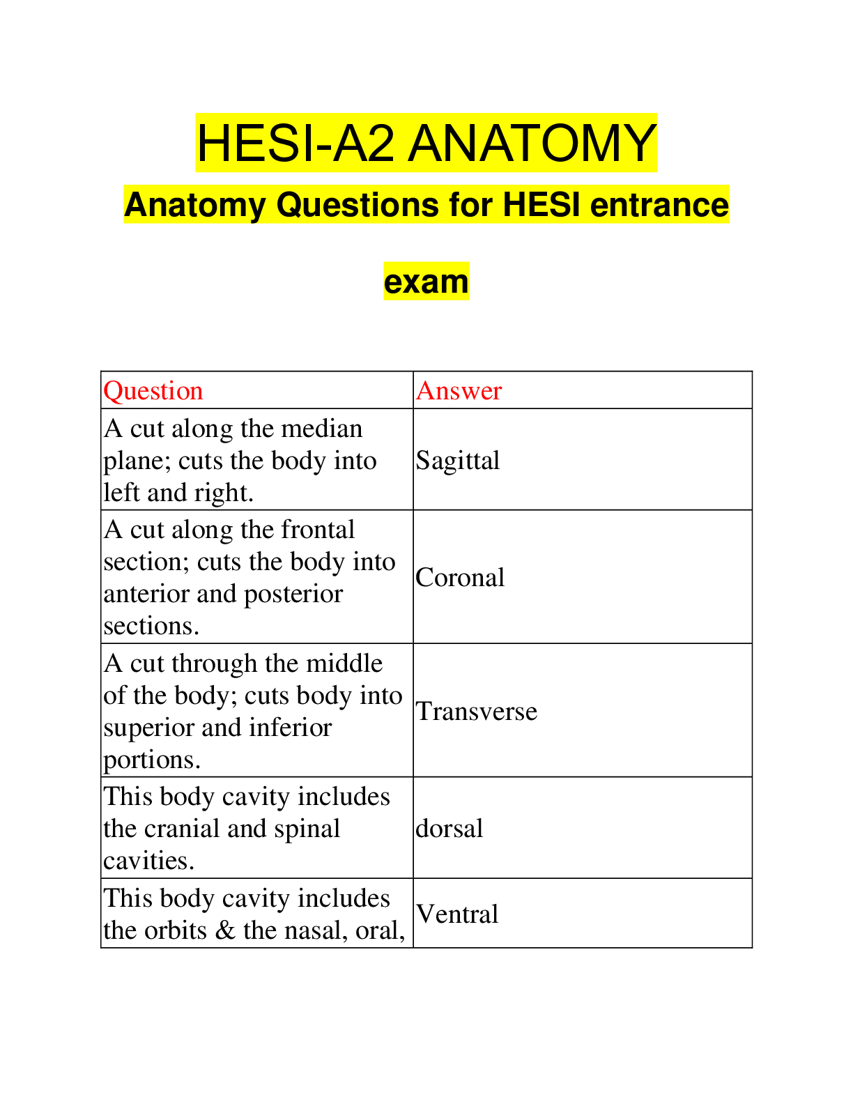 Anatomy > QUESTIONS & ANSWERS > HESI-A2 ANATOMY Anatomy Questions for HESI entrance exam (All)