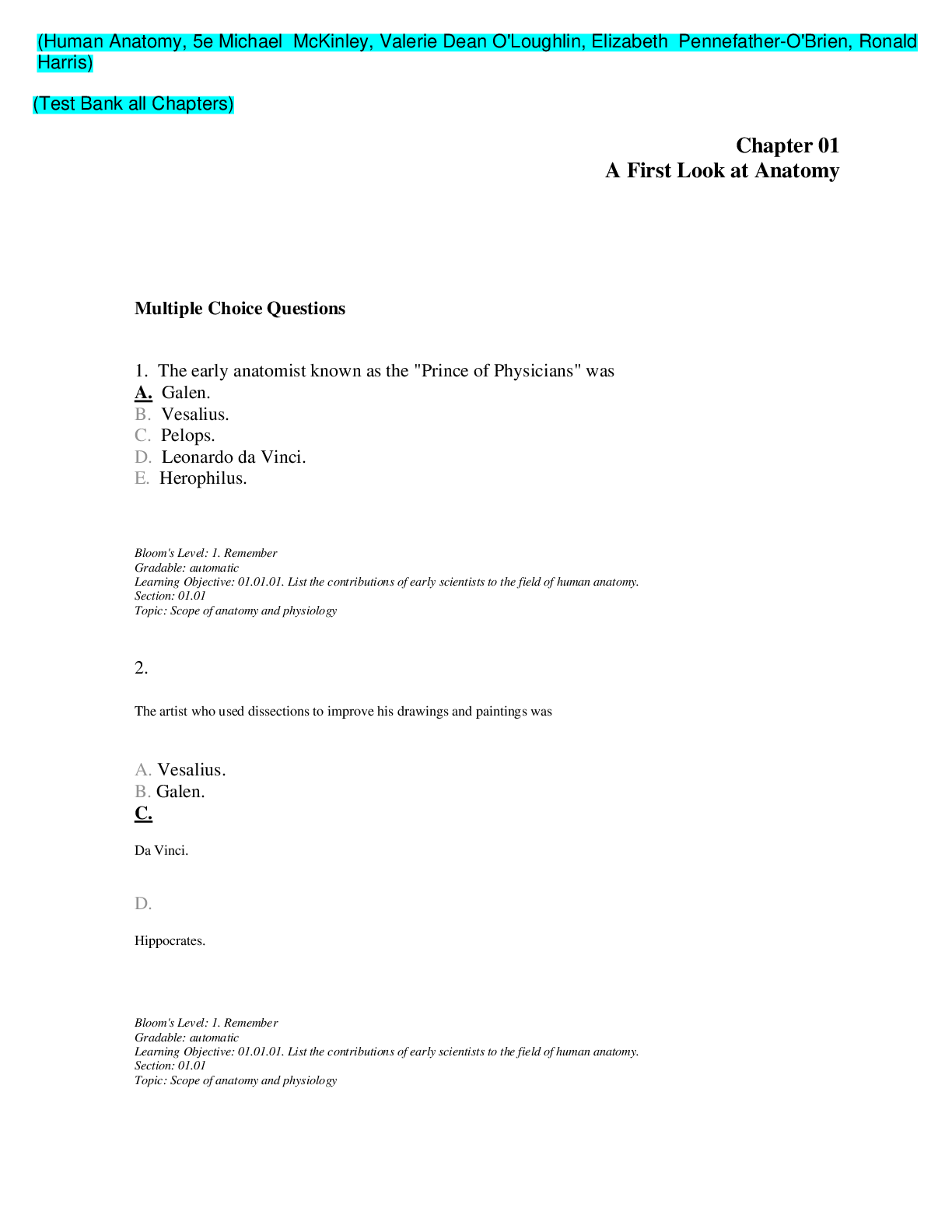 Anatomy > TEST BANKS > Human Anatomy, 5e Michael McKinley, Valerie Dean O'Loughlin, Elizabeth Pennefather-O'Brien, Ronald Harris (Test Bank) (All)