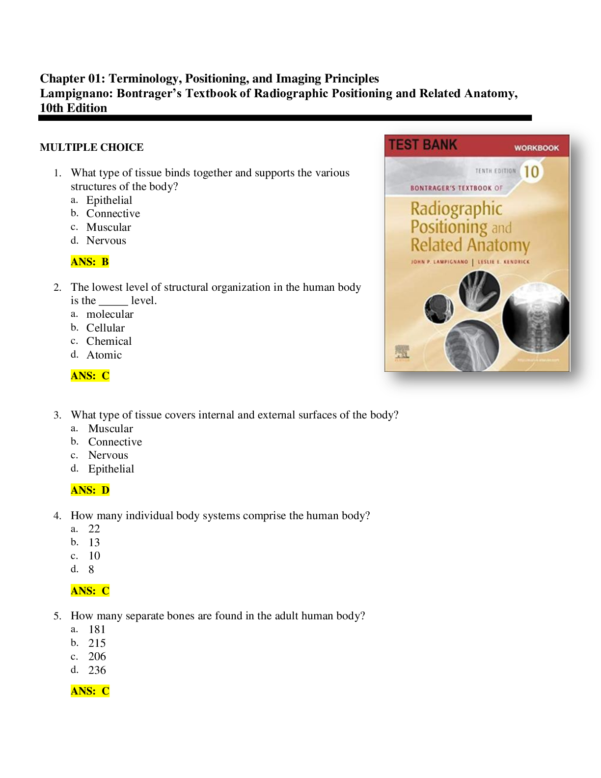 Anatomy > TEST BANKS > Test Bank for Bontragers Textbook of Radiographic Positioning and Related Anatomy 10th Edition by Lampignano Chapter 1-20 (All)