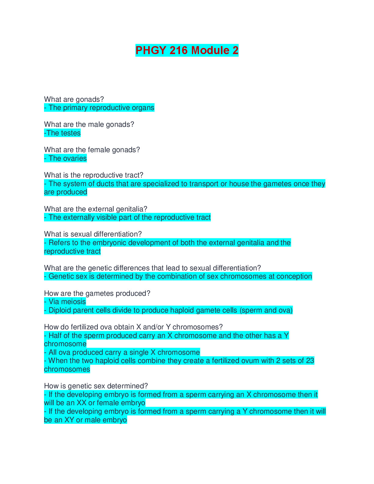 Physiology > EXAM > PHGY 216 Module 2 Exam | Questions with 100% Correct Answers (All)