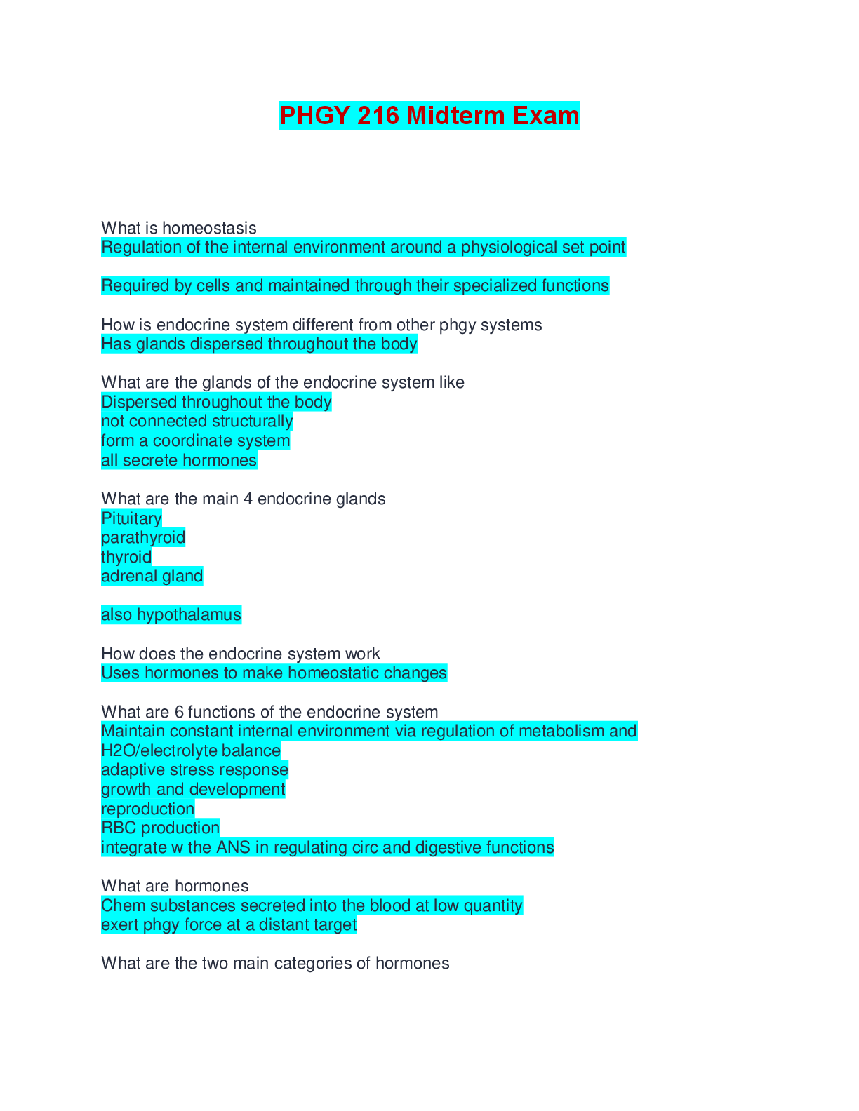 Physiology > EXAM > PHGY 216 Midterm Exam | Q & A (Complete Solutions) (All)