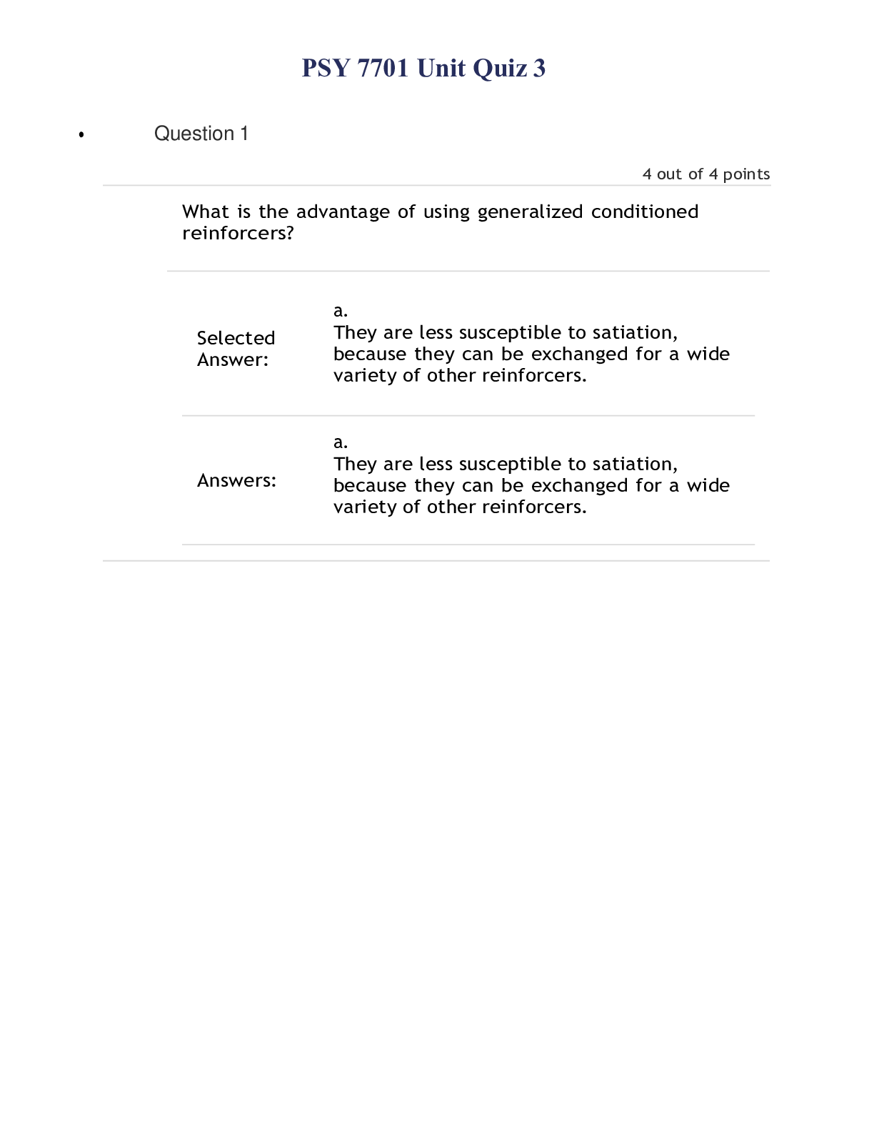 Physiology > EXAM > PSY 7701 Unit Quiz 3- Questions and Answers (All)