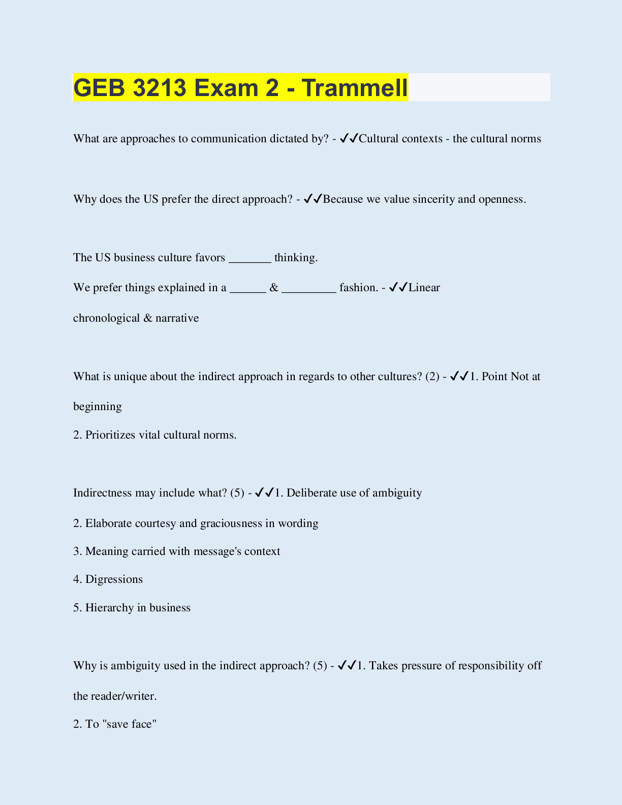 General Science > QUESTIONS & ANSWERS > GEB 3213 Exam 2 - Trammell (All)