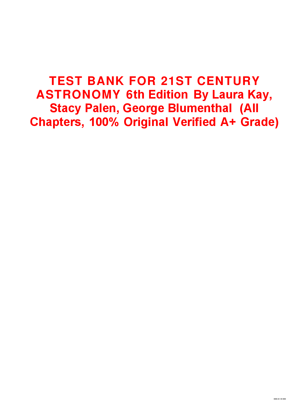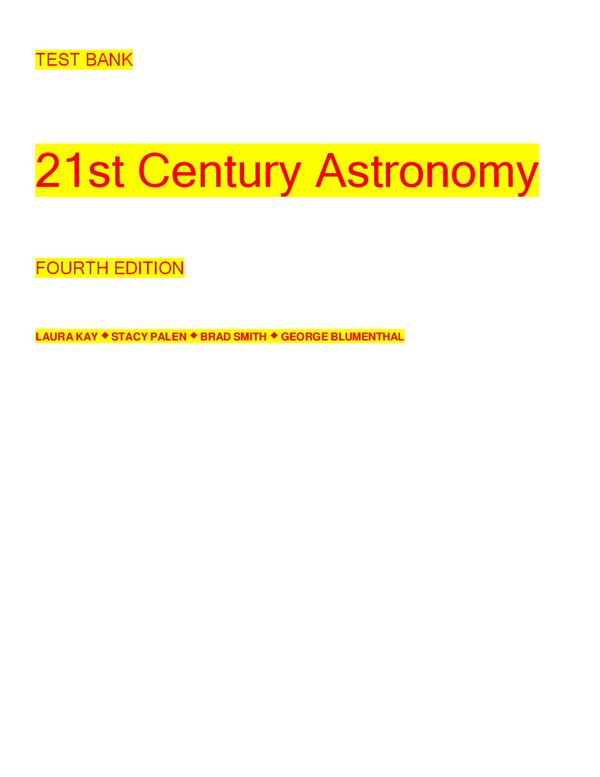 Astronomy > TEST BANKS > TEST BANK 21st Century Astronomy FOURTH EDITION LAURA KAY, STACY PALEN, BRAD SMITH, GEORGE BLUMENTHAL (All)