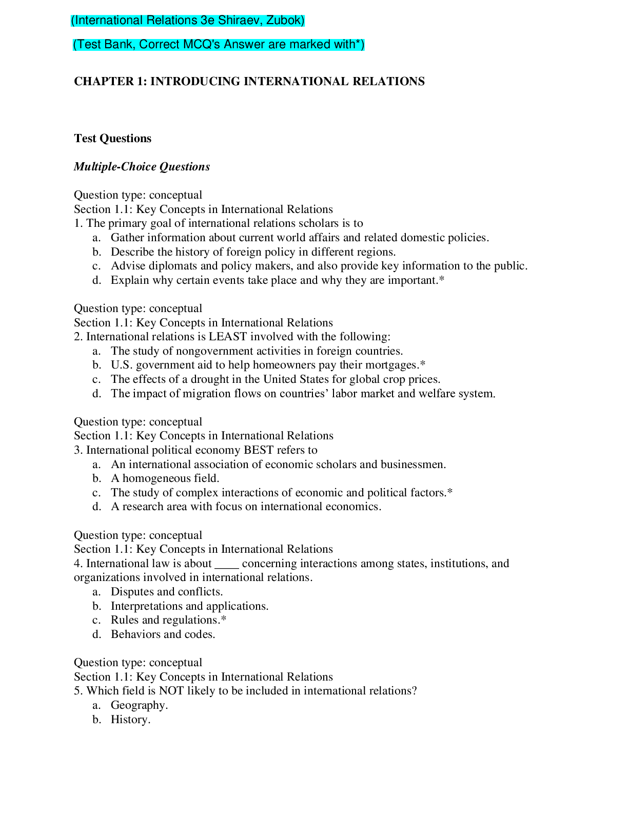 Public Relations > TEST BANKS > International Relations 3rd Edition By Shiraev, Zubok (Test Bank) (All)