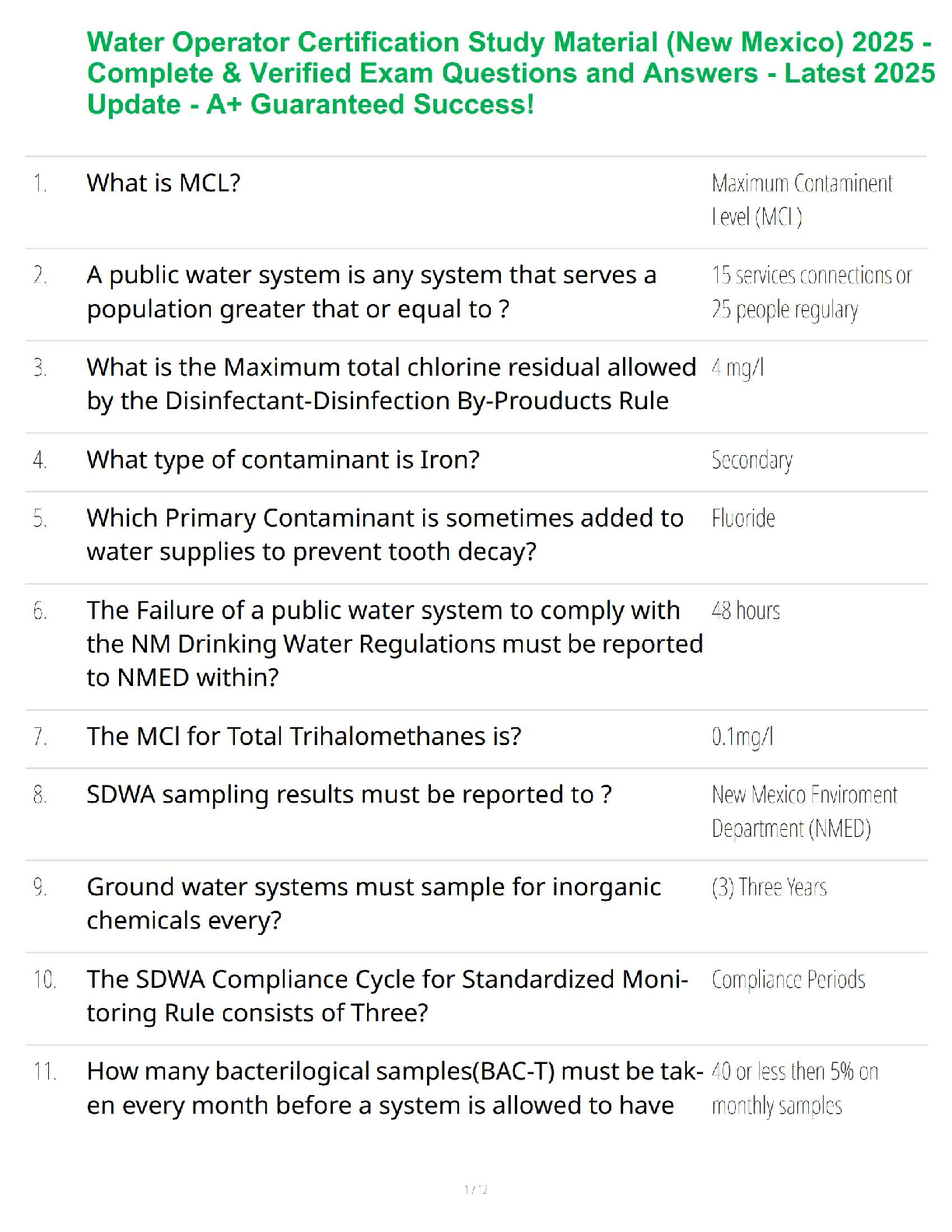 Public Relations > STUDY GUIDE > Water Operator Certification Study Material (New Mexico) 2025 - Complete & Verified Exam Questions and Answers - Latest 2025 Update - A+ Guaranteed Success! (All)