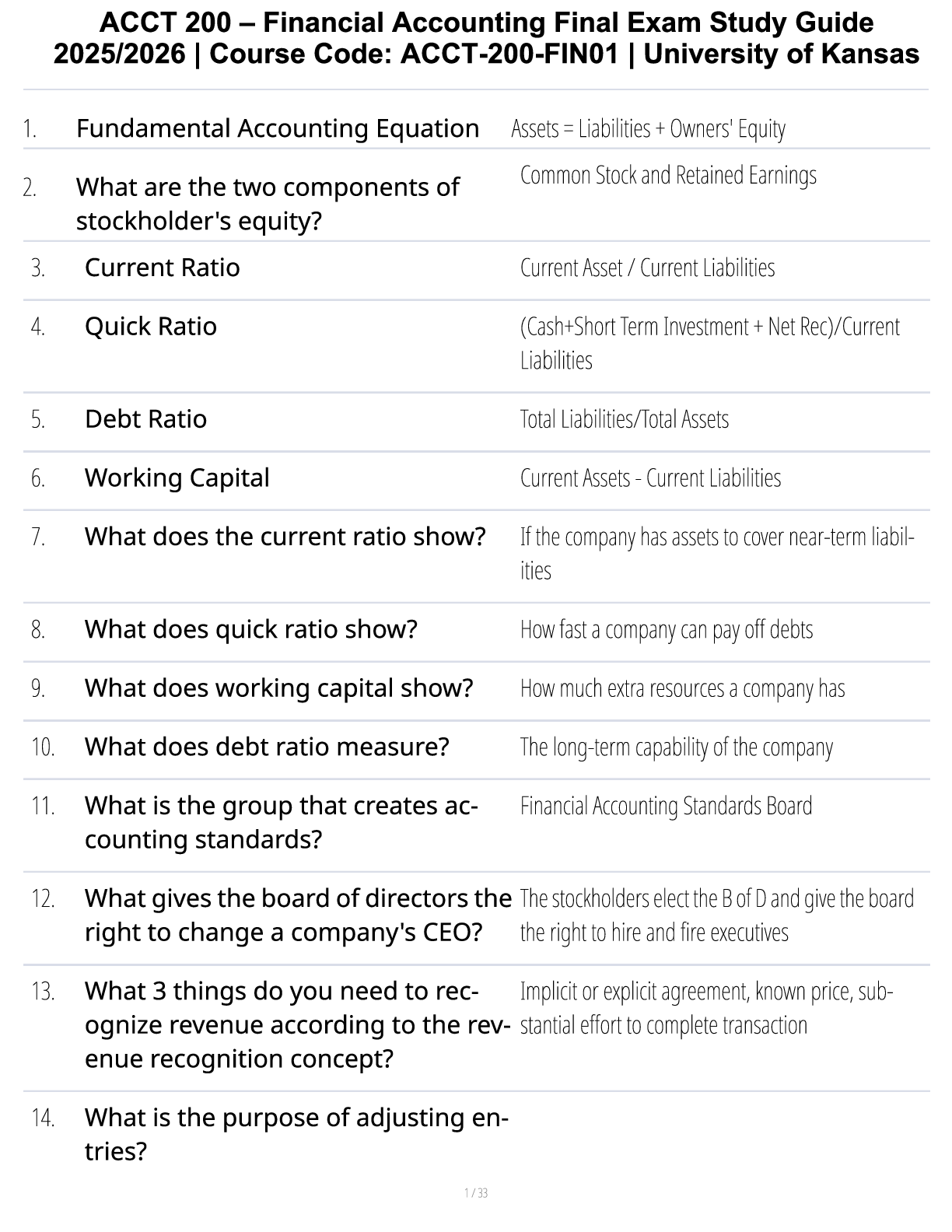 Accounting > STUDY GUIDE > ACCT 200 – Financial Accounting Final Exam Study Guide 2025/2026 | Course Code: ACCT-200-FIN01 | University of Kansas (All)