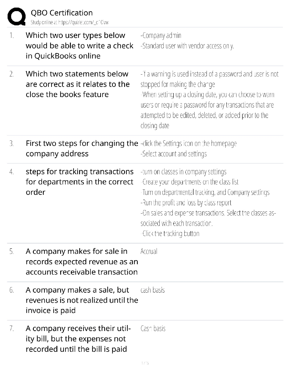 Accounting > QUESTIONS & ANSWERS > Quickbooks Online Certification (All)