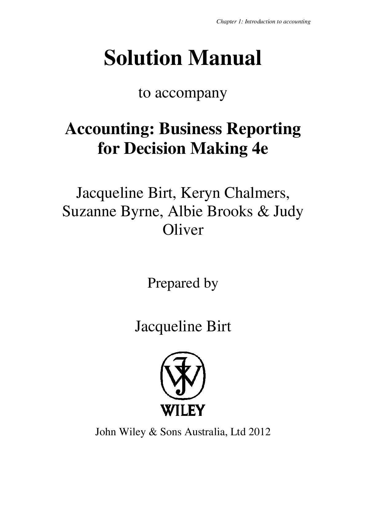 Accounting > SOLUTIONS MANUAL > Solutions Manual For Accounting Business Reporting for Decision Making 4th Edition By Birt Keryn Albie Suzy Oliver (All)