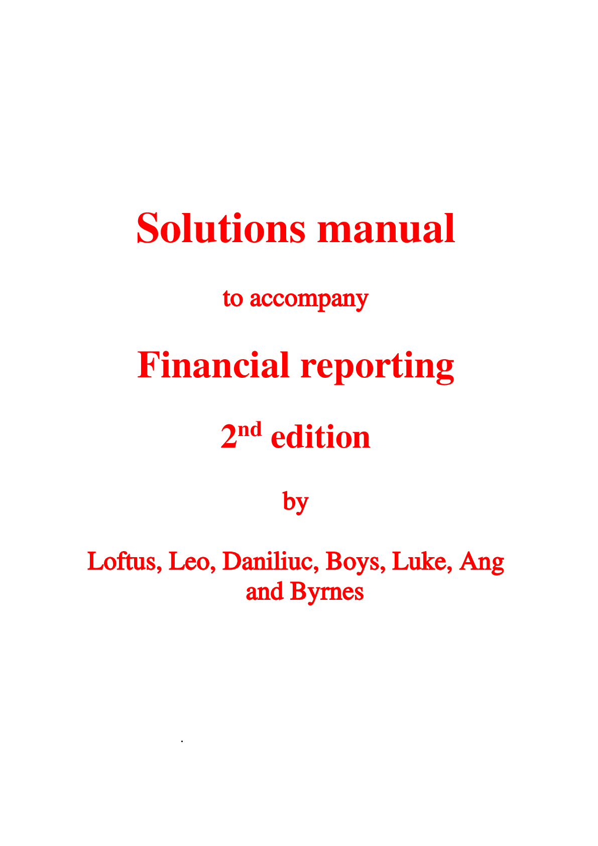 Accounting > SOLUTIONS MANUAL > Solutions Manual for Financial Reporting 2nd Edition By Janice Loftus, Ken Leo, Sorin Daniliuc, Noel Boys, Belinda Luke, Hong Nee Ang, Karyn Byrnes | All Chapters, 100% Original Verified, A+ Grade (All)
