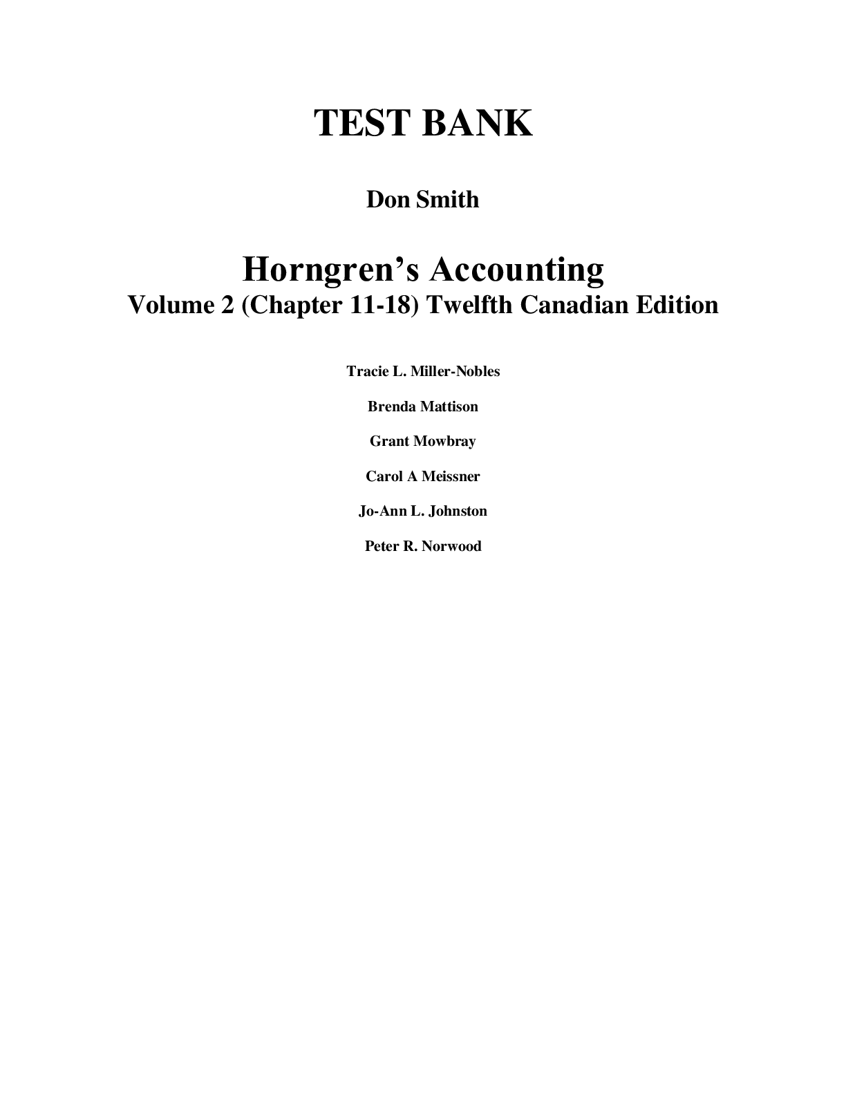 Accounting > TEST BANKS > Horngren's Accounting, Volume 2, 12th Canadian Edition, 12e Miller-Nobles, Mattison, Ella Mae Matsumura, Mowbray, Meissner, Jo-Ann Johnston (Test Bank) (All)
