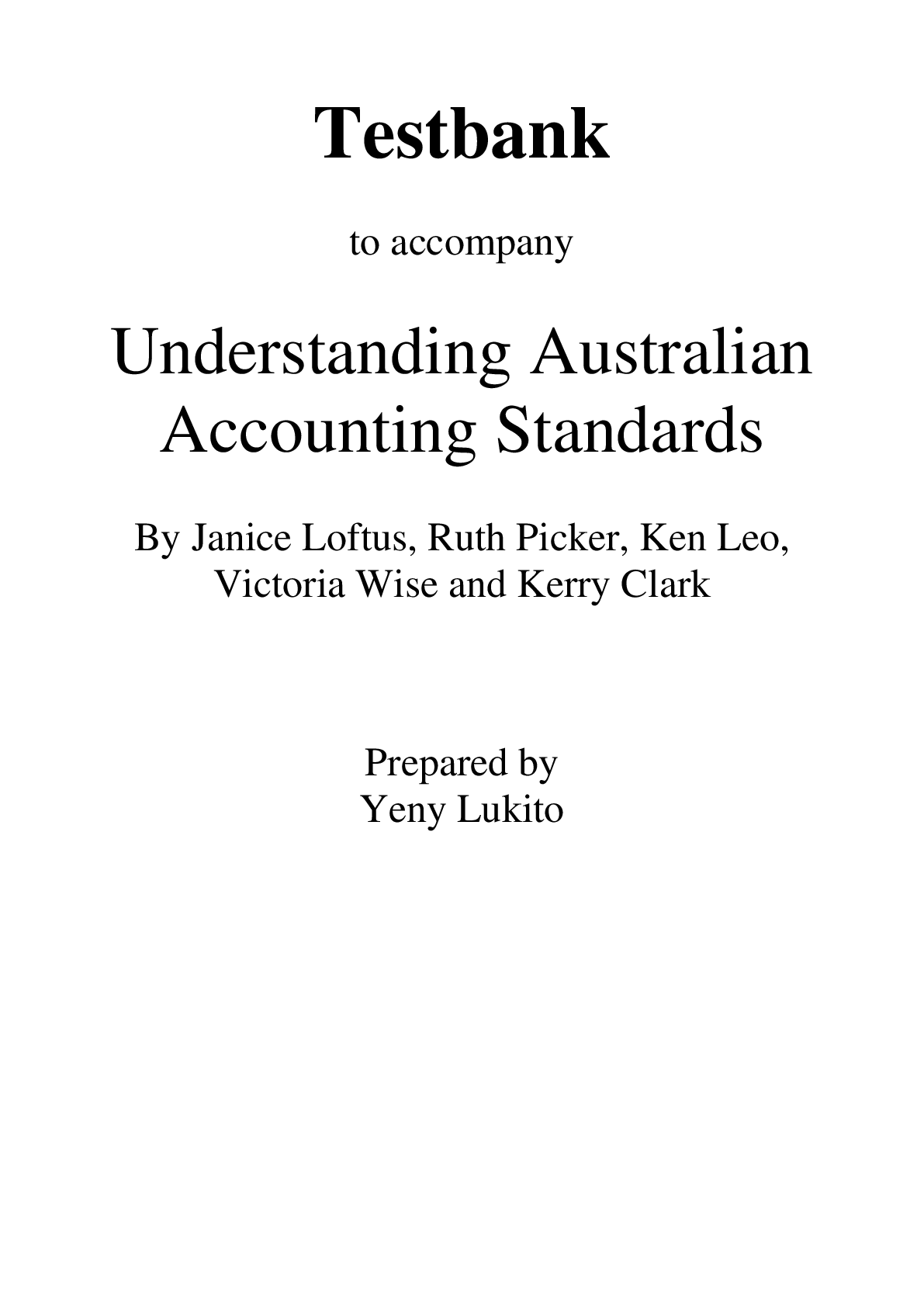 Accounting > TEST BANKS > Understanding Australian Accounting Standards 1e Janice Loftus Ken Leo Ruth Picker Victoria Wise Kerry Clark (Test Bank) (All)