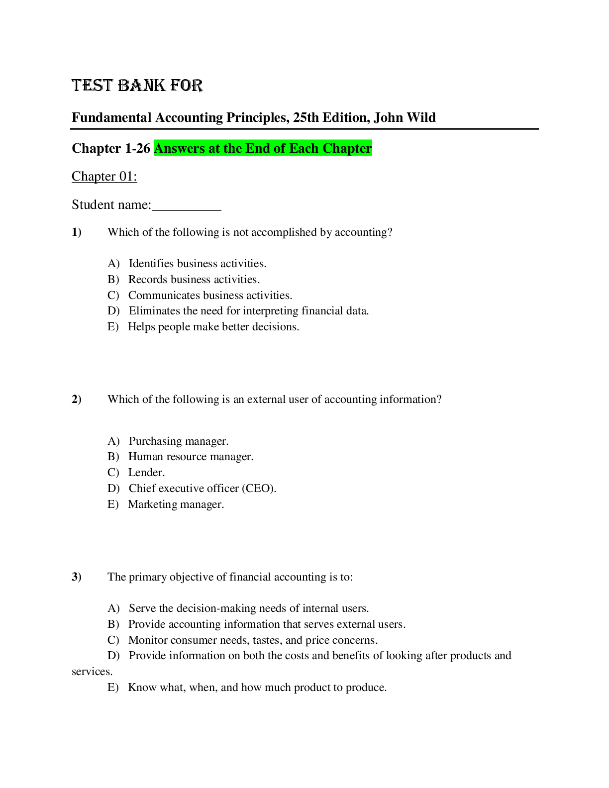 Accounting > TEST BANKS > Test Bank For Fundamental Accounting Principles, 25th Edition, John Wild (All)
