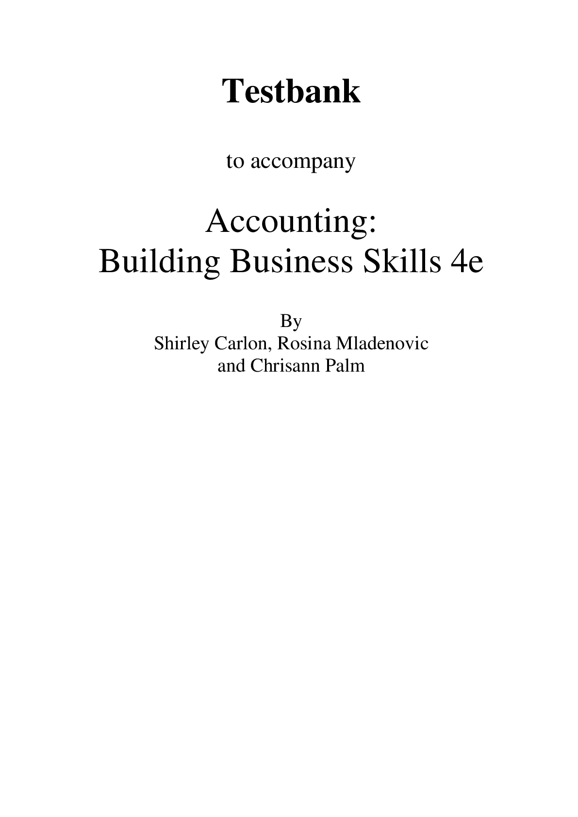 Accounting > eBook-PDF > Testbank to accompany Accounting:BuildingBusinessSkills 4Edition By Shirley Carlon, Rosina Mladenovicand Chrisann Palm (All)