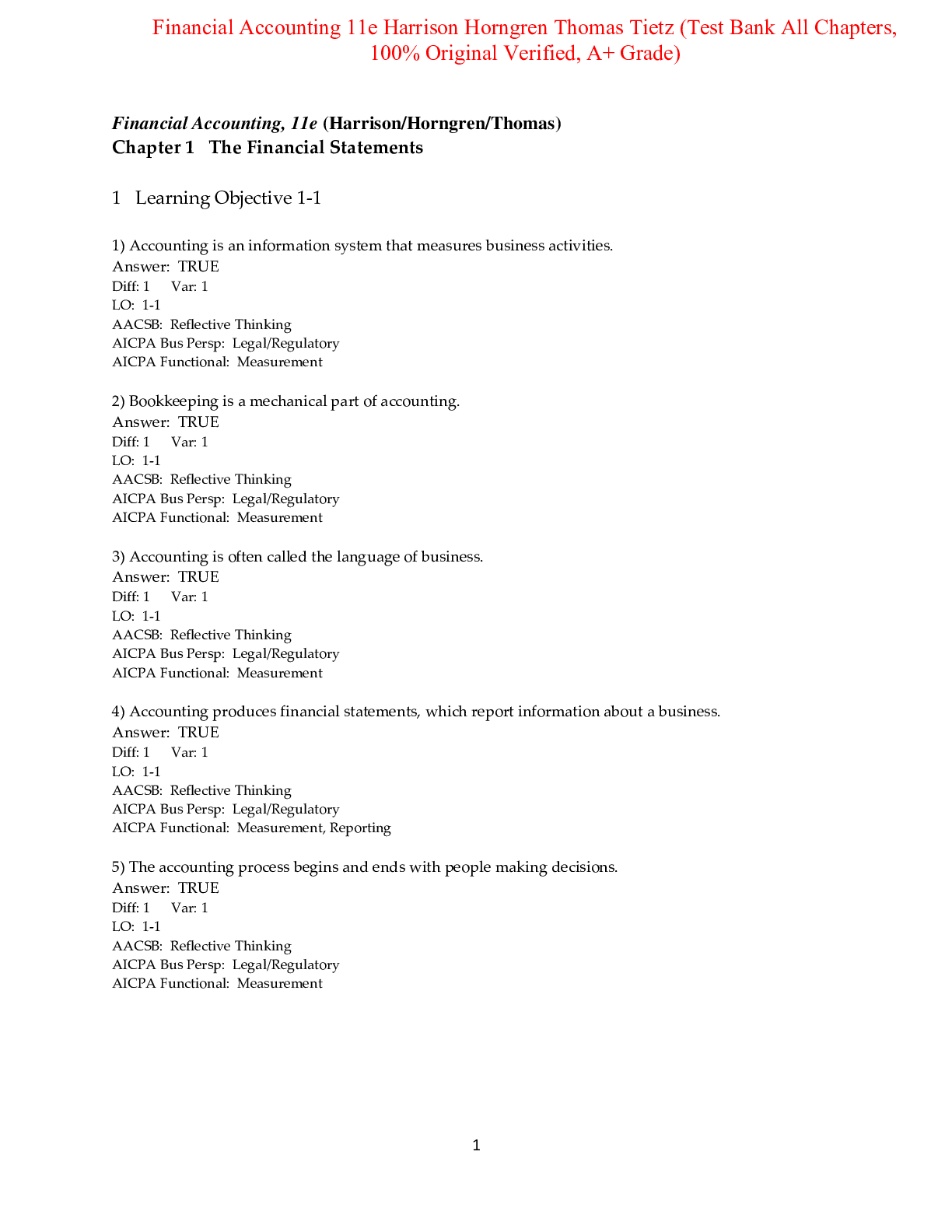Accounting > TEST BANKS > Test Bank For Financial Accounting 11th Edition By Harrison Horngren Thomas Tietz (All)