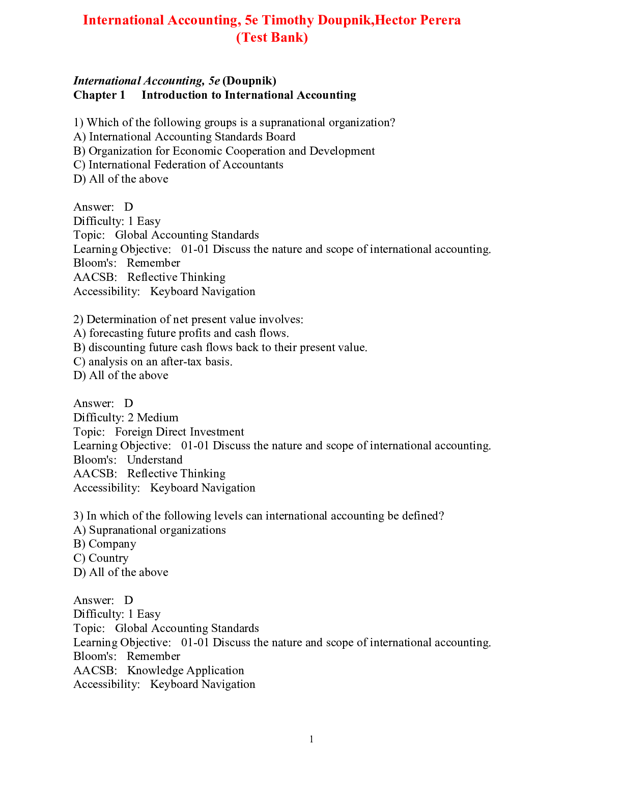 Accounting > TEST BANKS > Test Bank For International Accounting 5th Edition By Timothy Doupnik, Hector Perera (All)