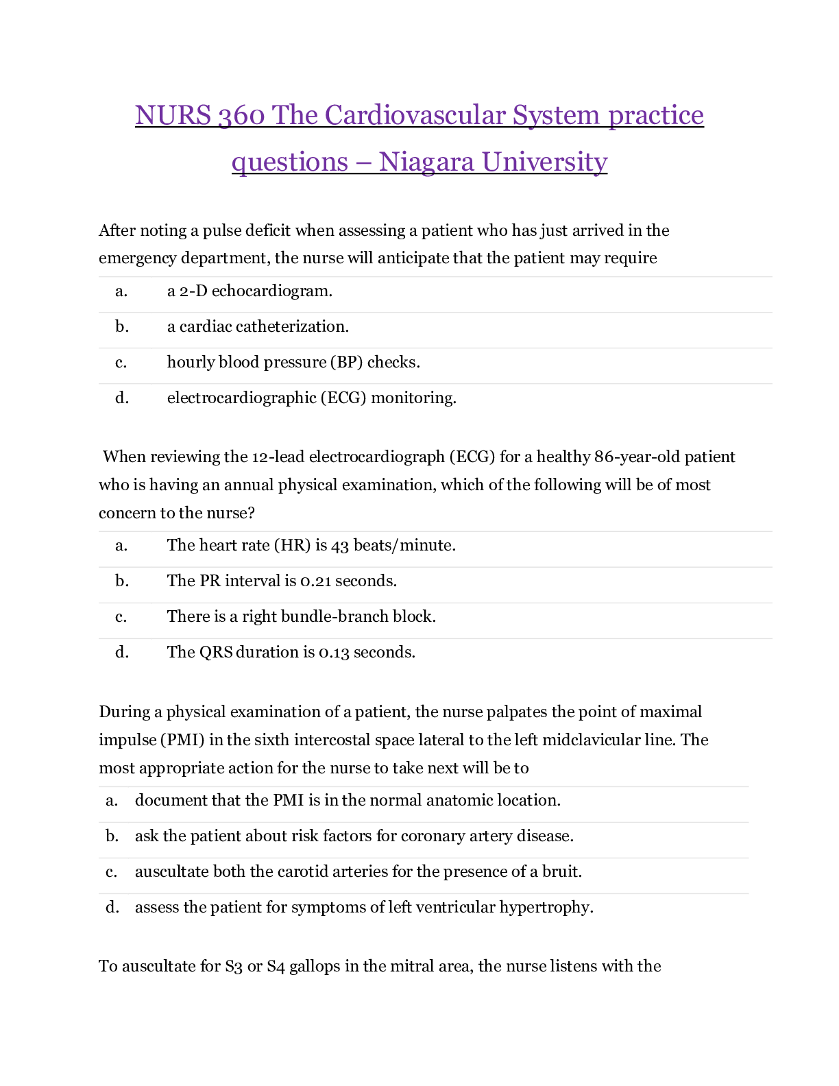Medical Studies > EXAM > NURS 360 Practice questions (All)