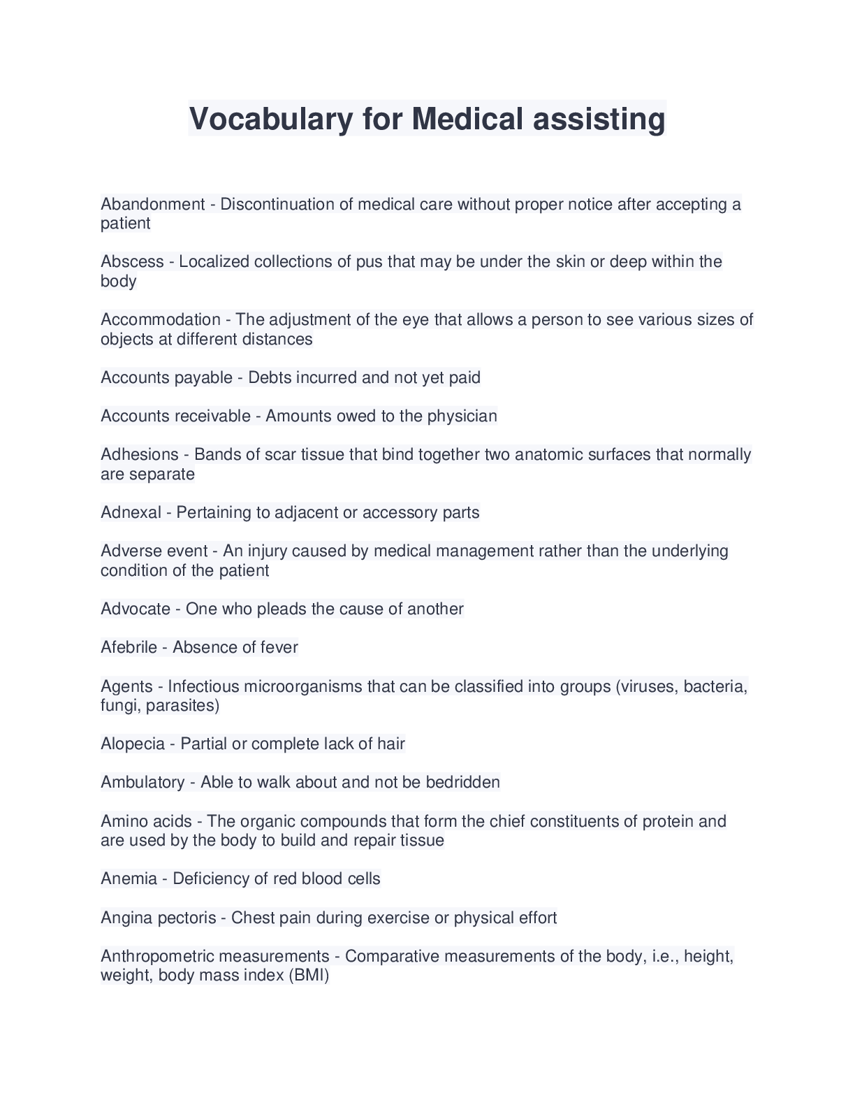 Medical Studies > Summary > Vocabulary for Medical assisting (All)