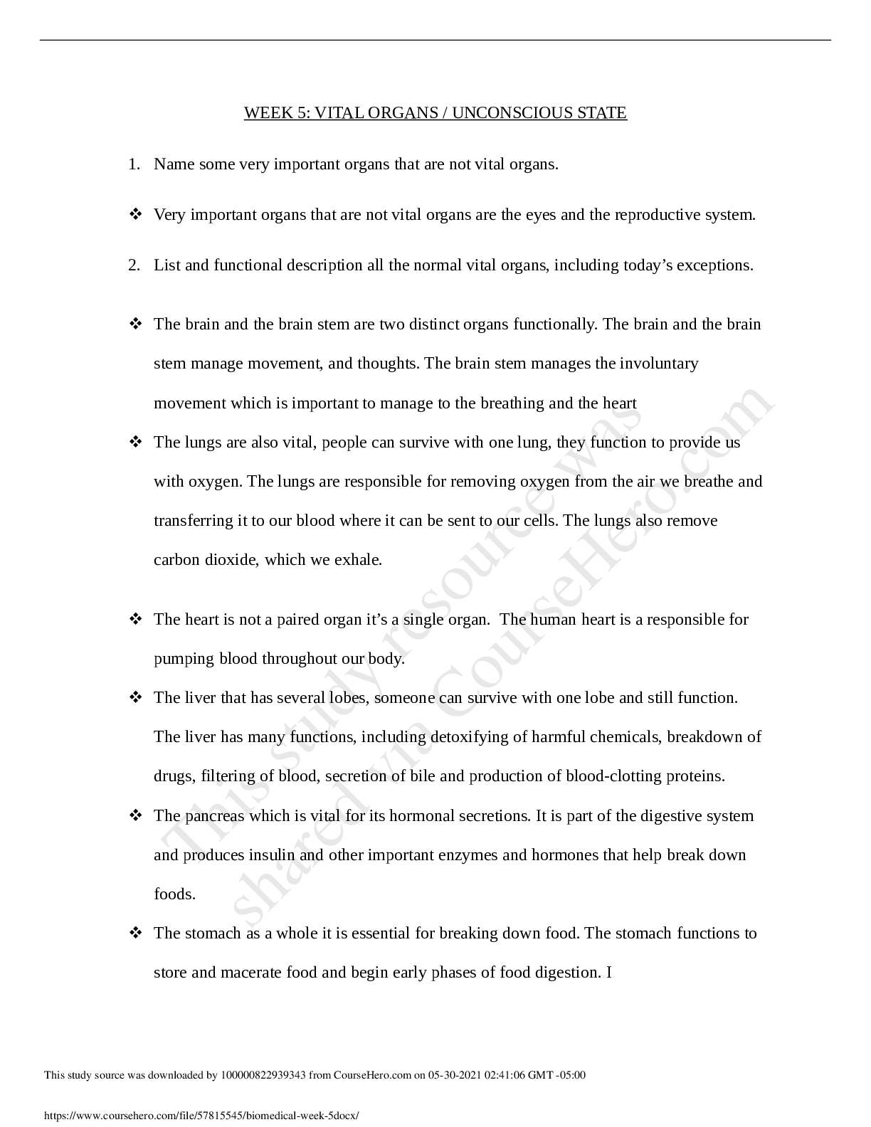 Medical Studies > Summary > WEEK 5: VITAL ORGANS / UNCONSCIOUS STATE (All)