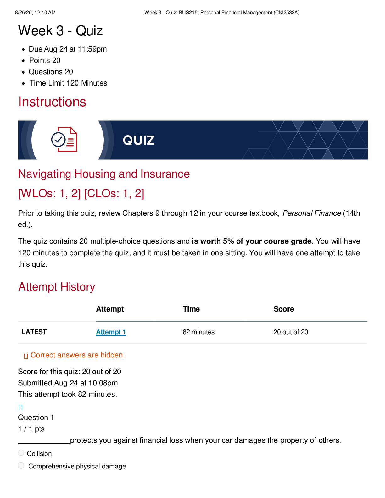 Business Administration > EXAM > BNAD 401 Week 3 Quiz | Score 20/20 | University of Arizona (All)