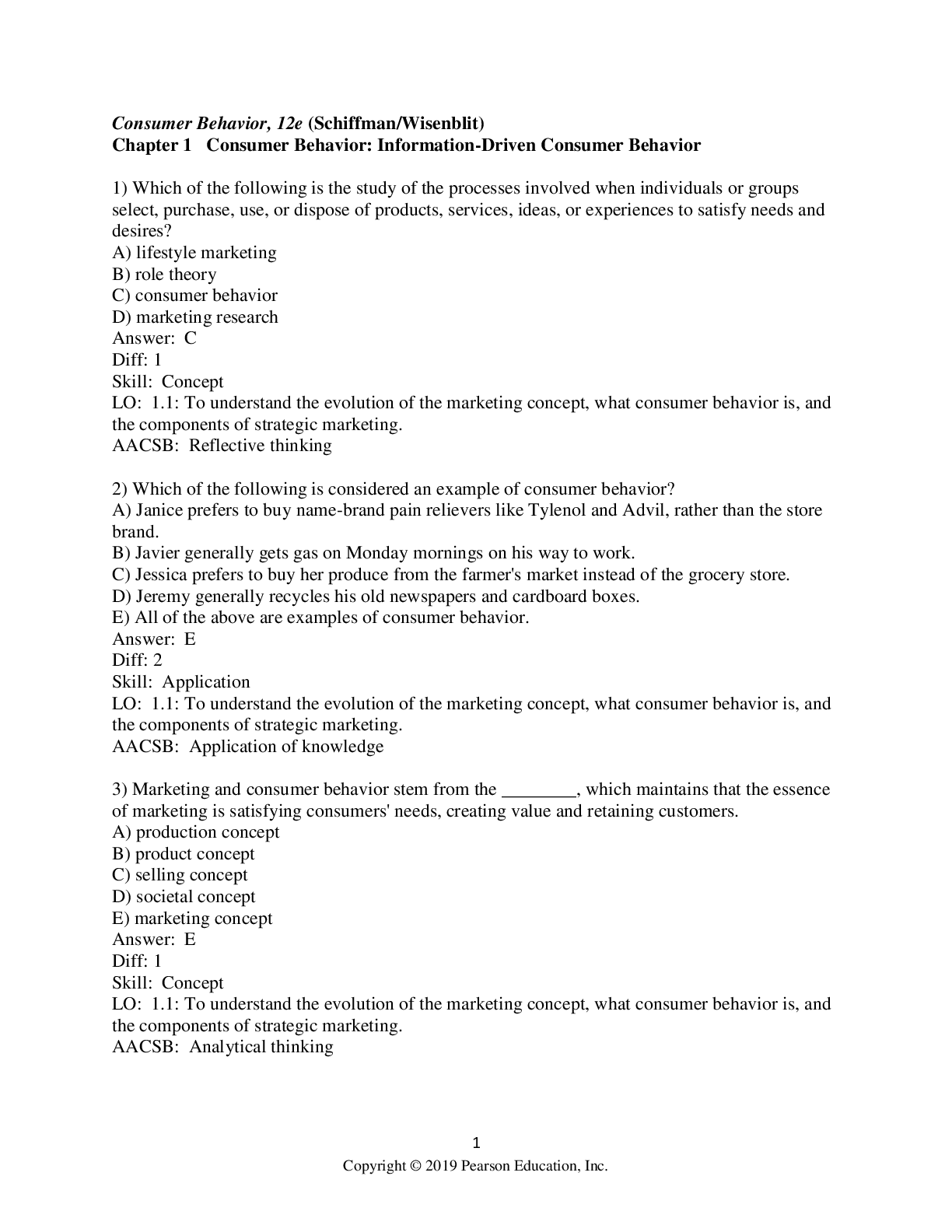 Business Administration > TEST BANKS > Test Bank for Consumer Behavior 12th Edition by Schiffman (All)