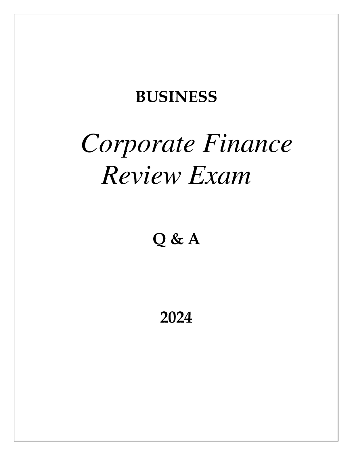 Business Administration > EXAM > UPenn BUSINESS CORPORATE FINANCE FUNDAMENTSLS REVIEW EXAM Q & A 2024 (All)